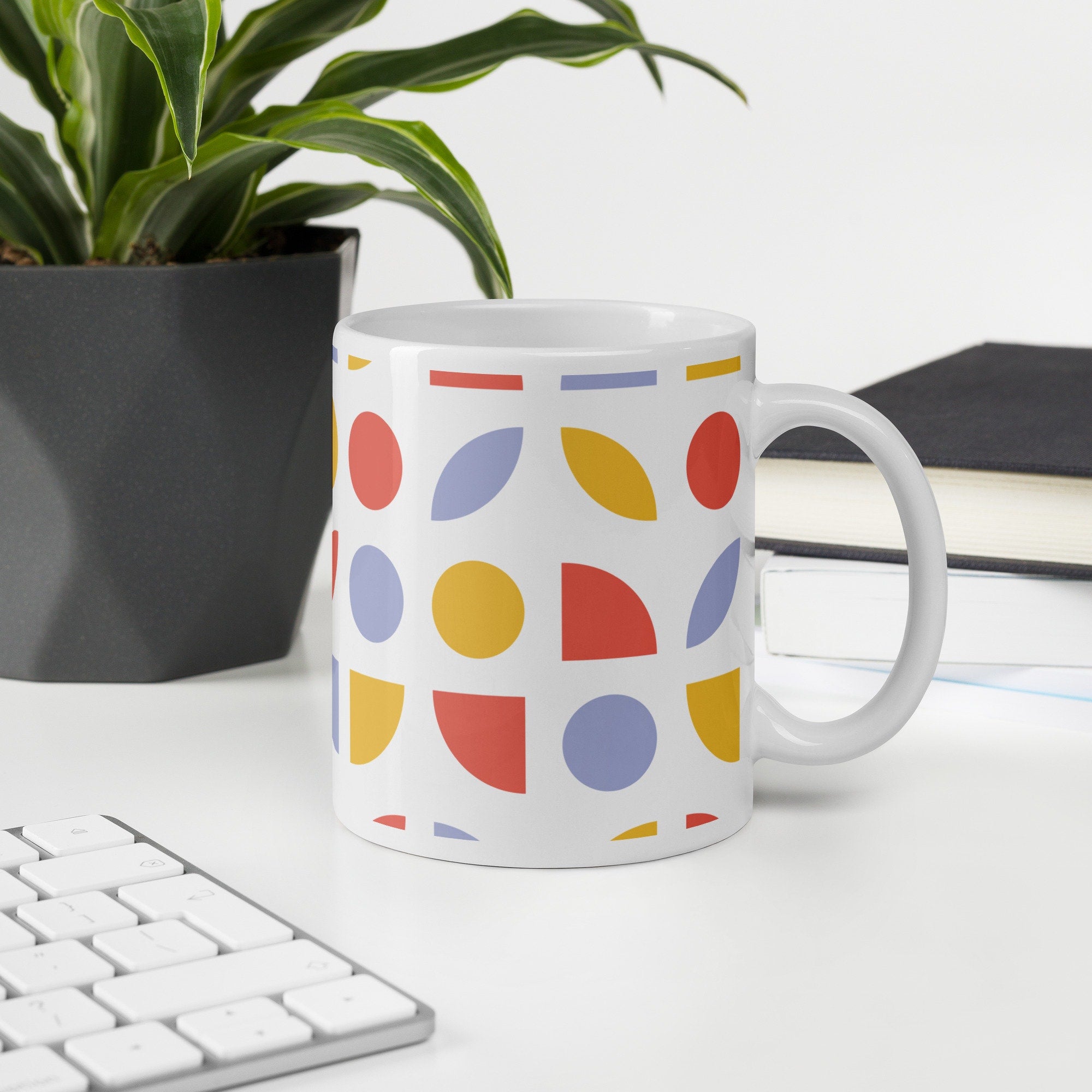 Whether you're drinking your morning coffee, evening tea, or something in between—this mug's for you! It's sturdy and glossy with a vivid abstract design print that'll withstand the microwave and dishwasher.