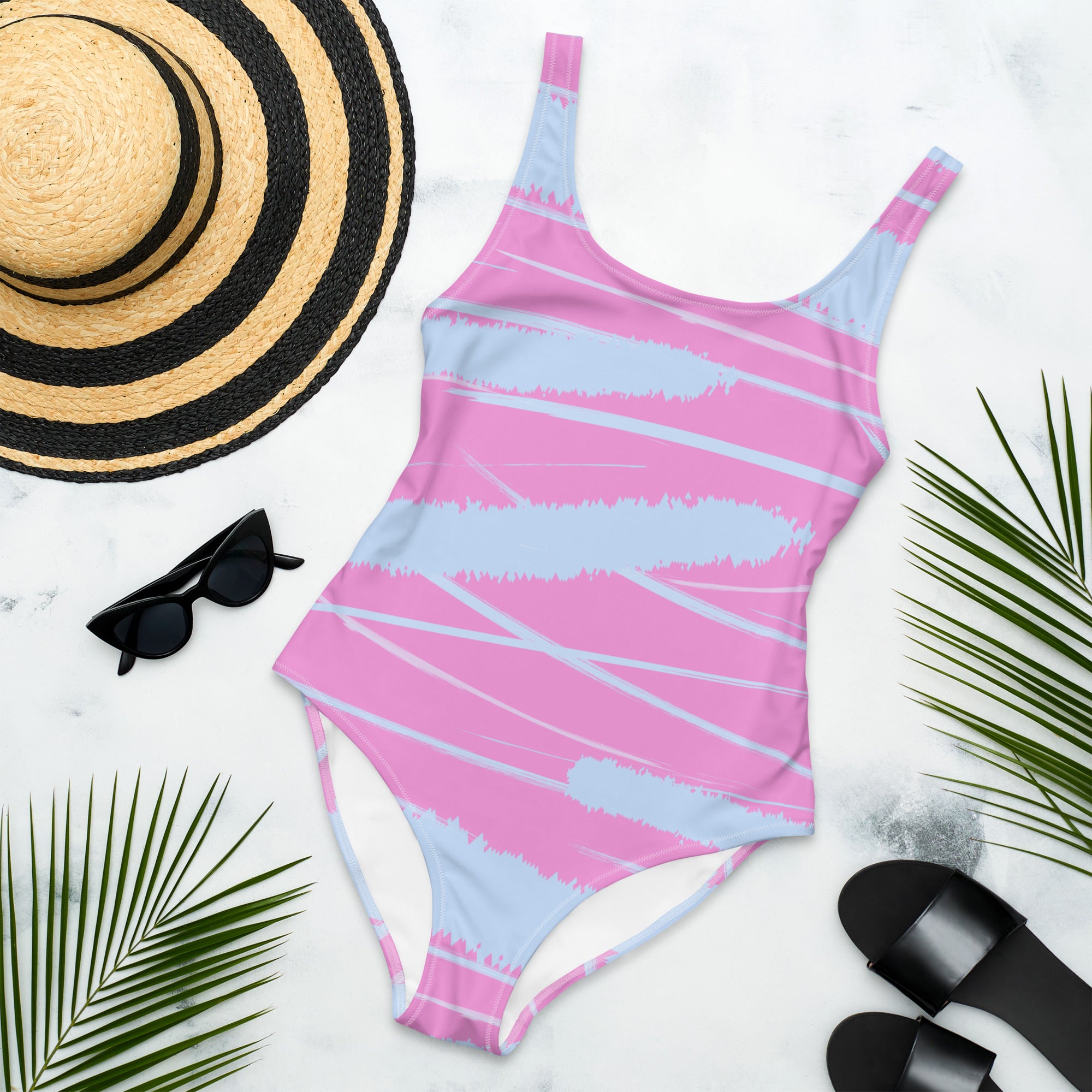 Stand out with our One-Piece Swimsuit featuring an all-over Abstract Lavender Pattern. This swimsuit is made from a smooth fabric that ensures a comfortable and flattering fit. The scoop neckline and low-scoop back add a touch of elegance, while the zig-zag stitching and double-layer front provide durability and comfort. Made from four-way stretch material, the swimsuit stretches and recovers both on the cross and lengthwise grains, ensuring a perfect fit. Each swimsuit is printed, cut, and hand-sewn by our expert in-house teams, guaranteeing a high-quality finish.