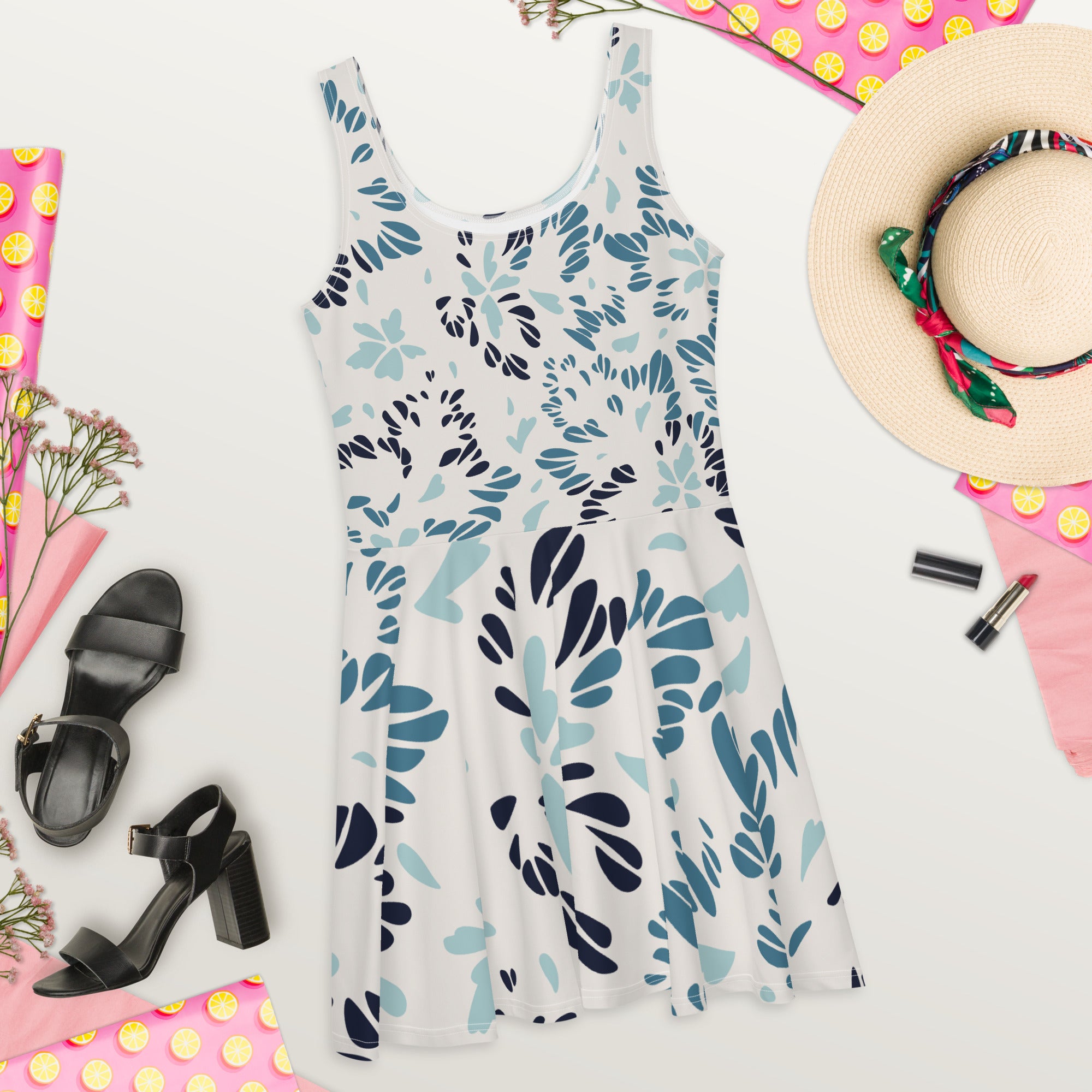 Embrace the beauty of nature with our Abstract Natural Pattern Sleeveless Skater Dress. This dress is designed with a mid-thigh length flared skirt that adds a playful and flirty touch to your look.