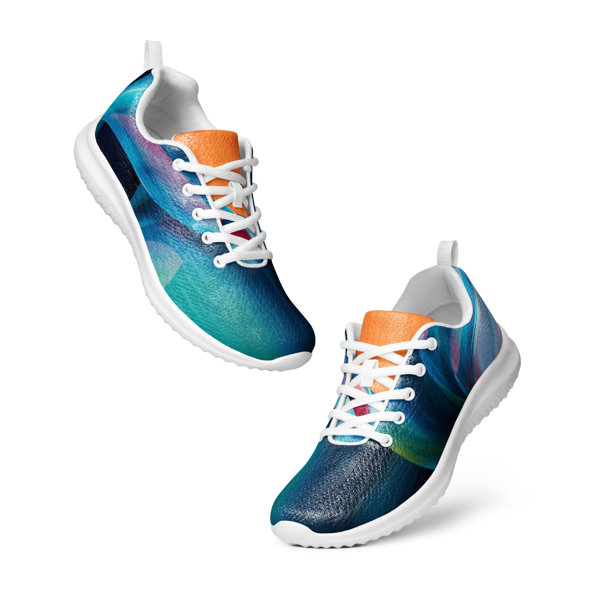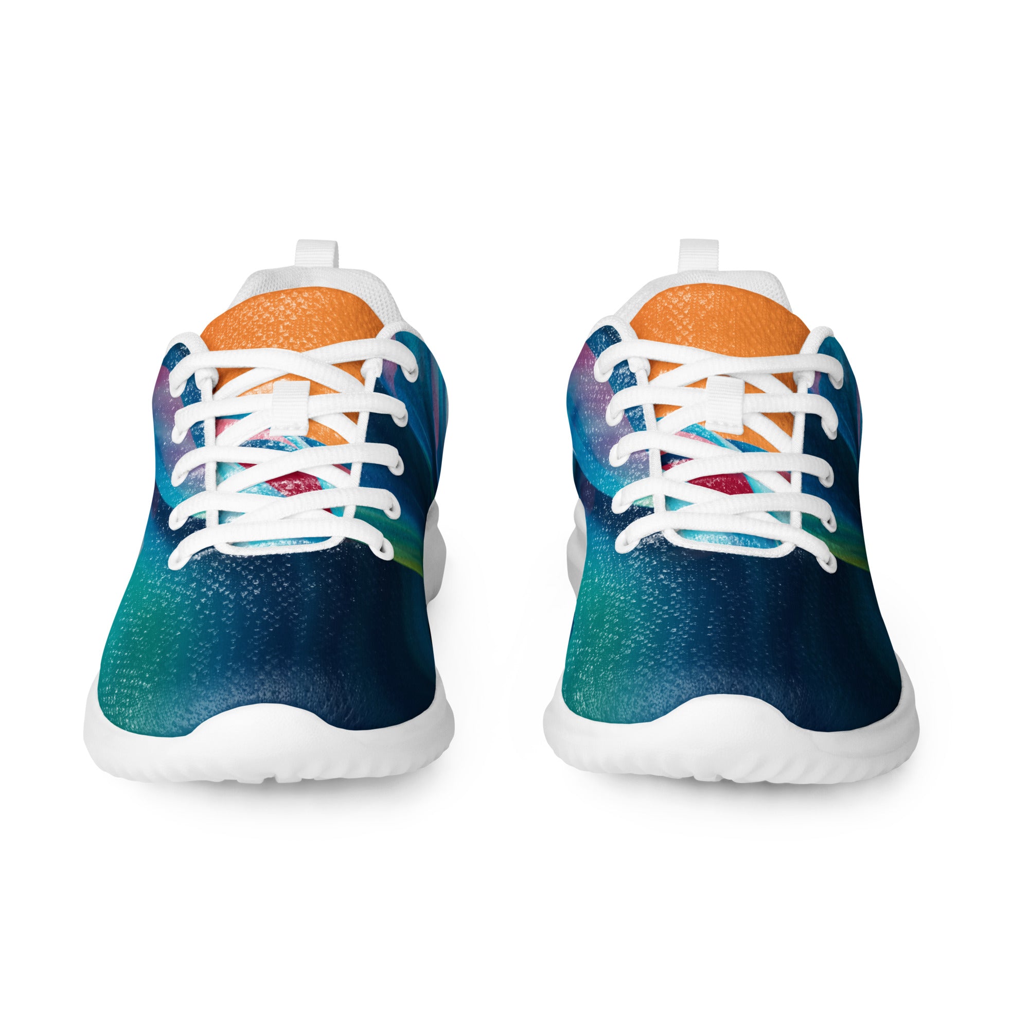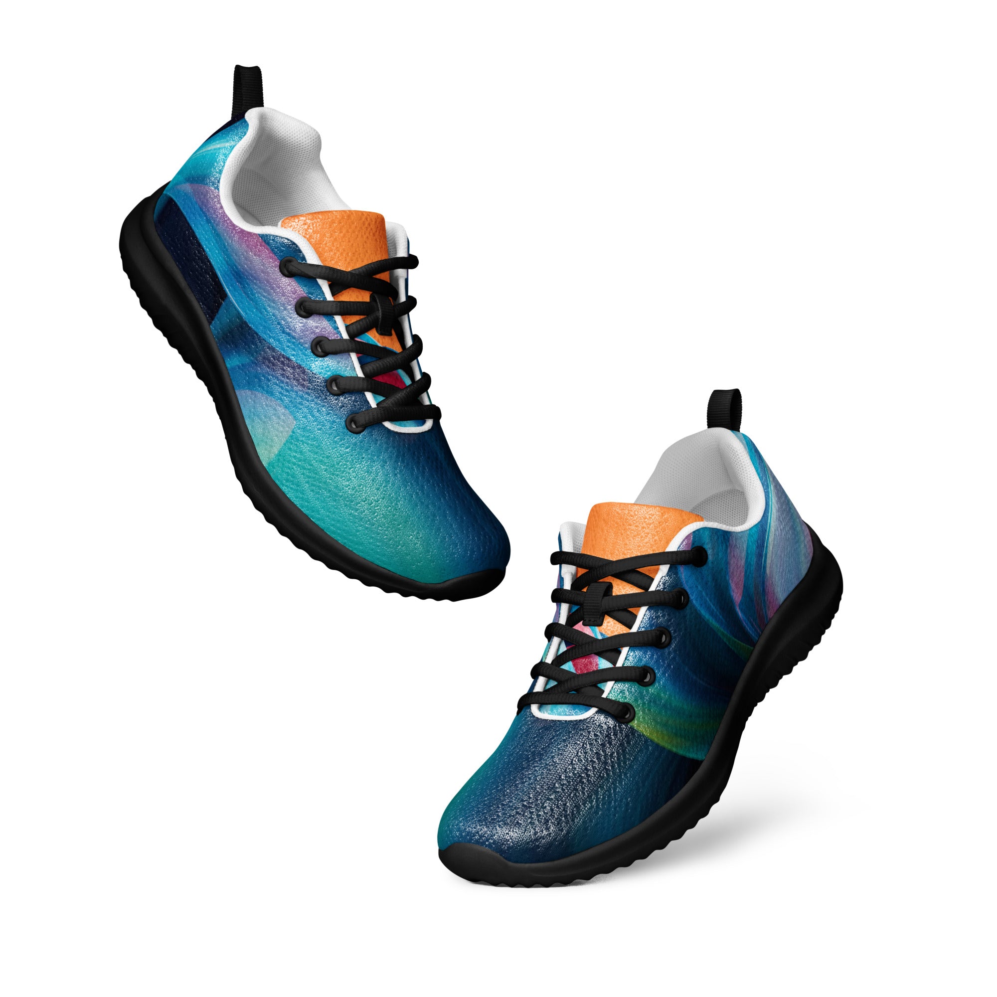 Unleash your stride with these ultralight flyknit sneakers, built for movement and designed to stand out. The swirling blend of deep blue, electric green, and fiery orange delivers high-impact style, while the performance features keep you grounded and comfortabl. Crafted for all-day wear.