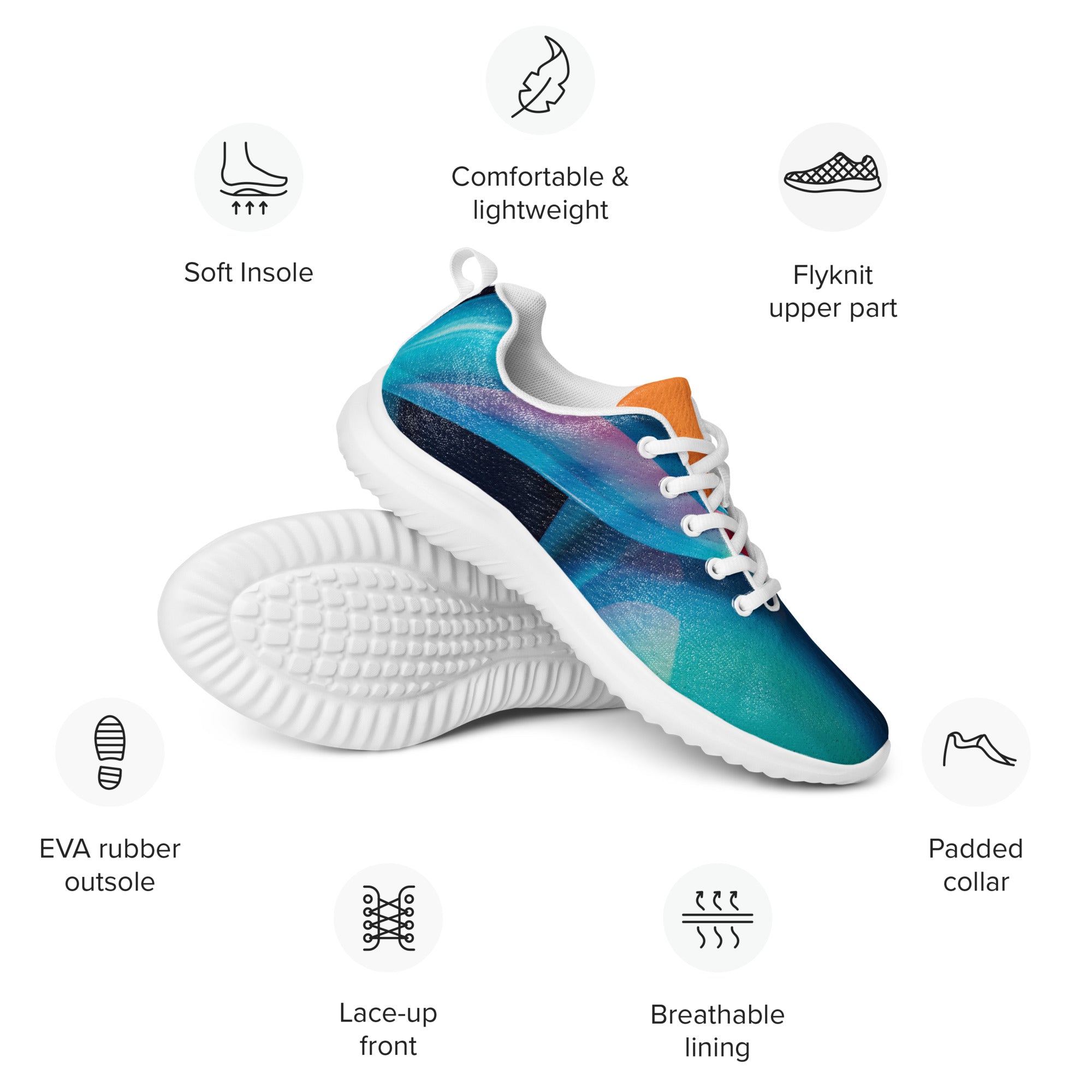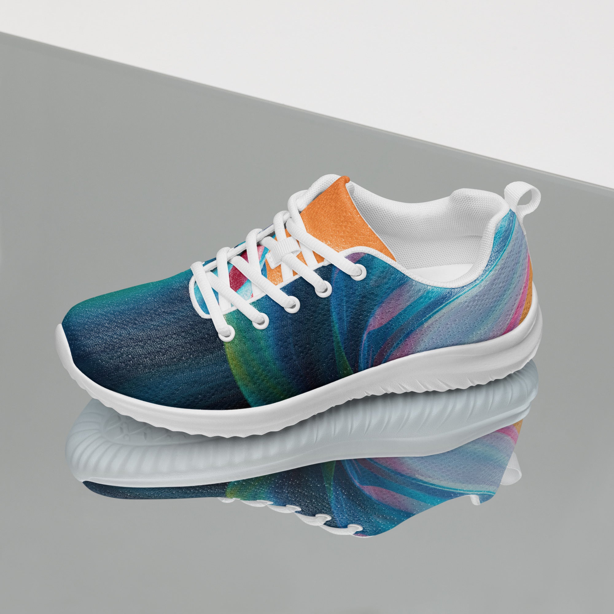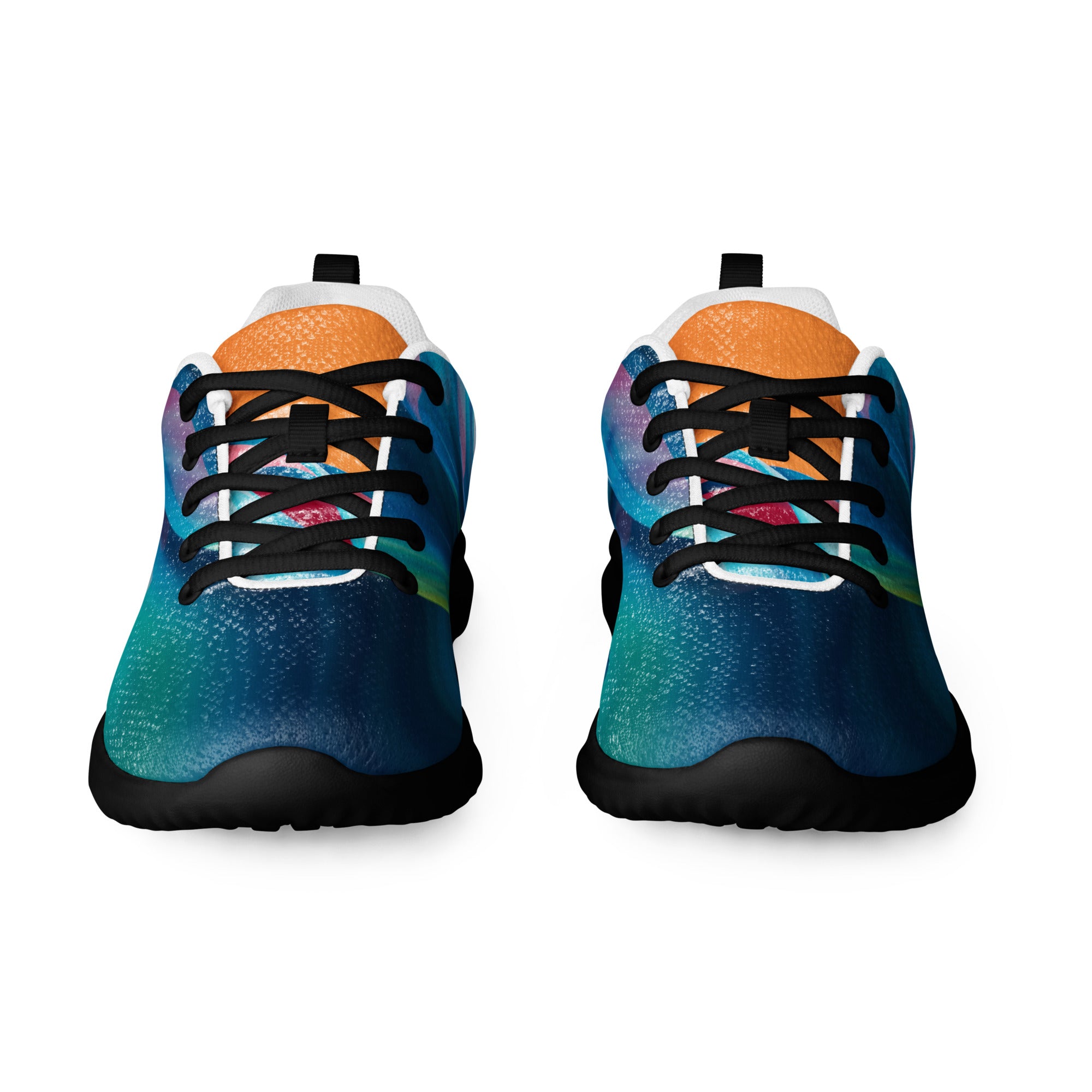Unleash your stride with these ultralight flyknit sneakers, built for movement and designed to stand out. The swirling blend of deep blue, electric green, and fiery orange delivers high-impact style, while the performance features keep you grounded and comfortabl. Crafted for all-day wear.