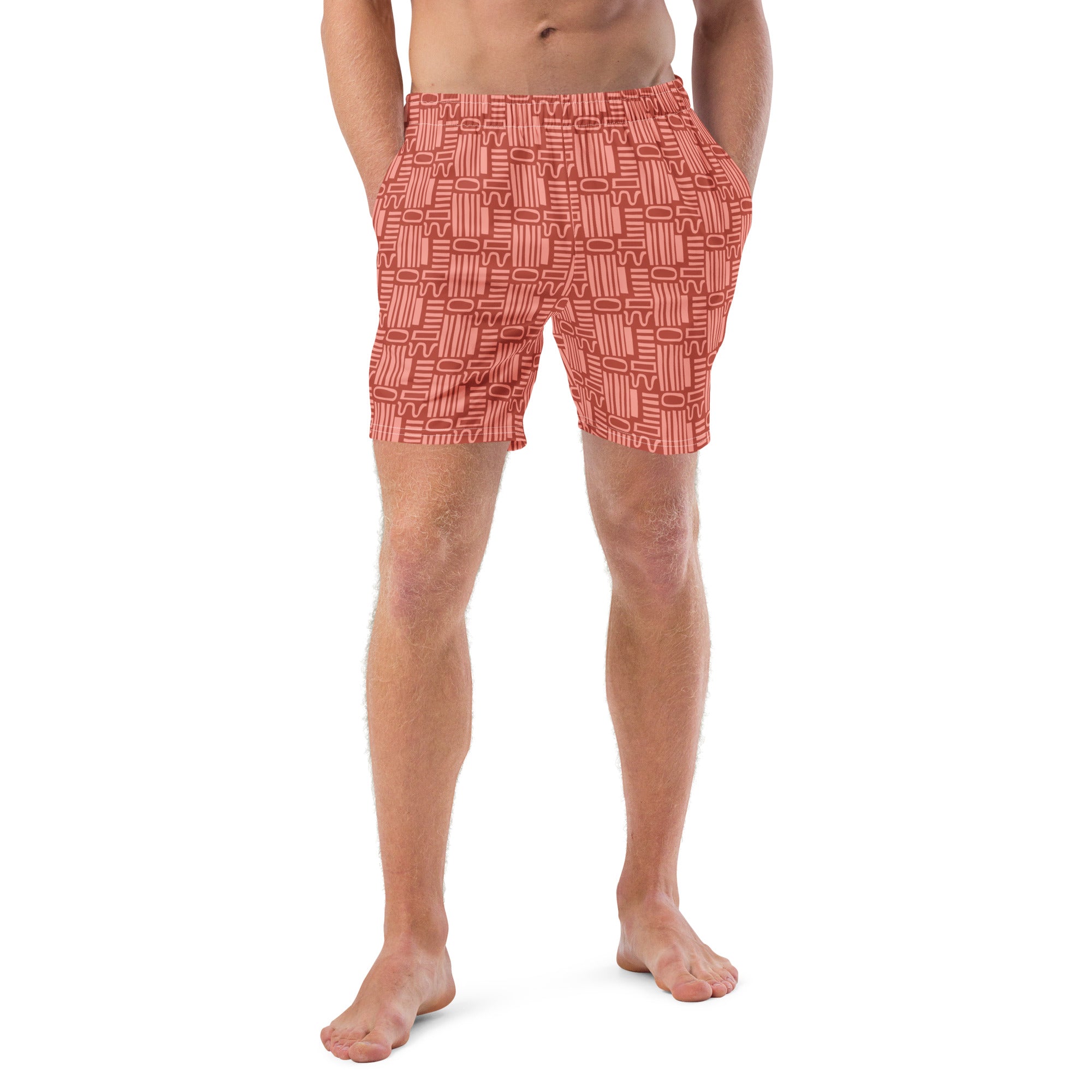 Experience the perfect blend of style, comfort, and sustainability with our Carmine Abstract Pattern Men’s Recycled Swim Trunks. Crafted from four-way stretch water-repellent microfiber fabric, these trunks offer unparalleled flexibility and quick-drying convenience. The elastic waistband with drawcord ensures a secure and comfortable fit, while the silky anti-chafe mesh inner liner minimizes skin irritation.