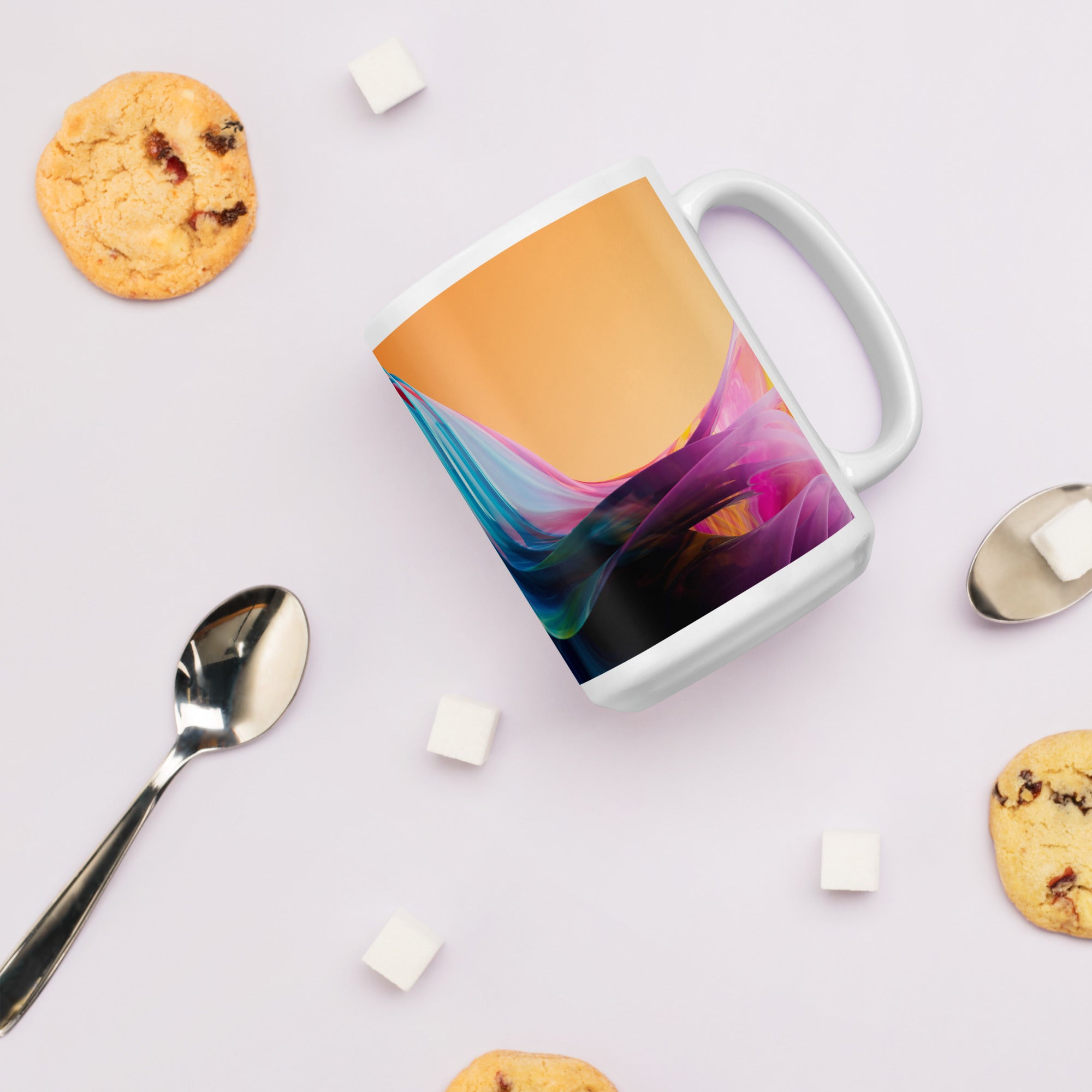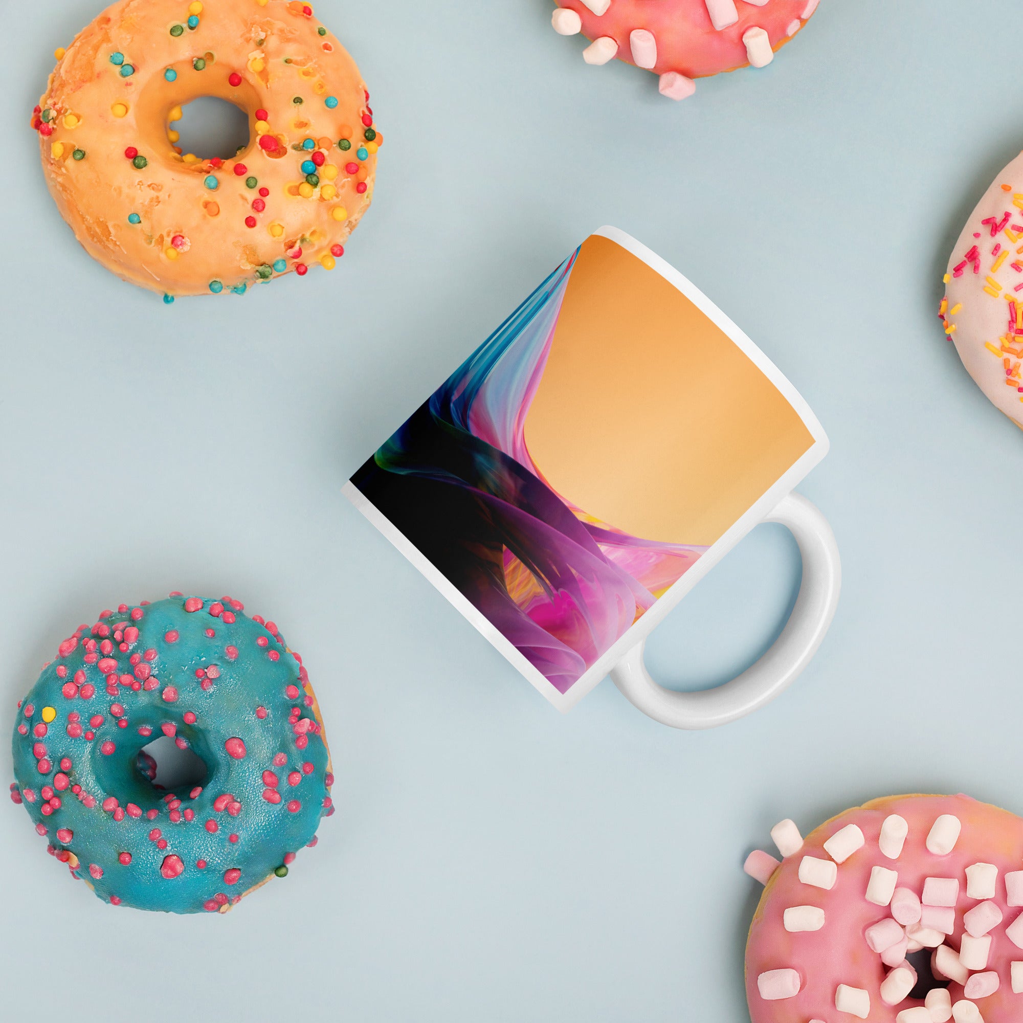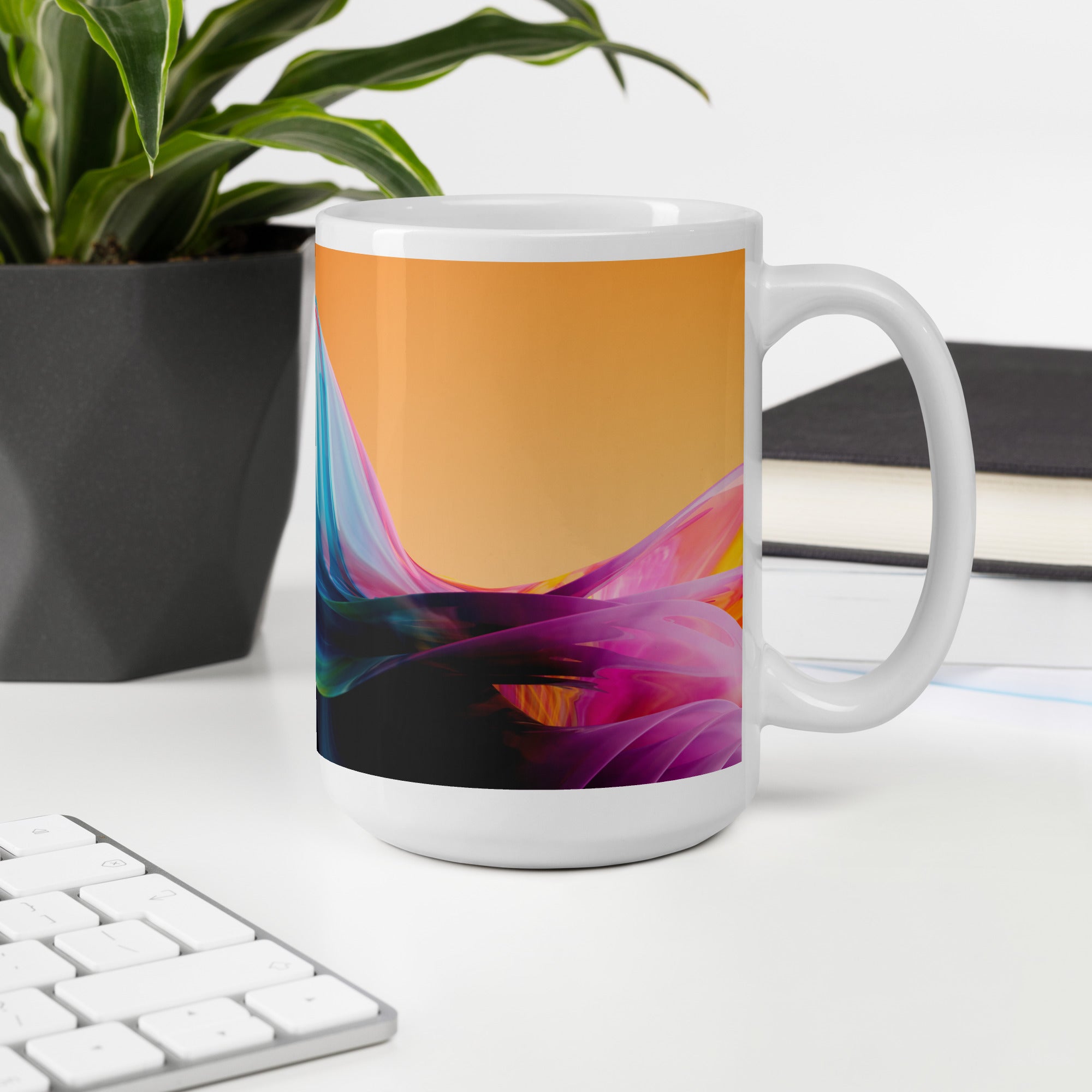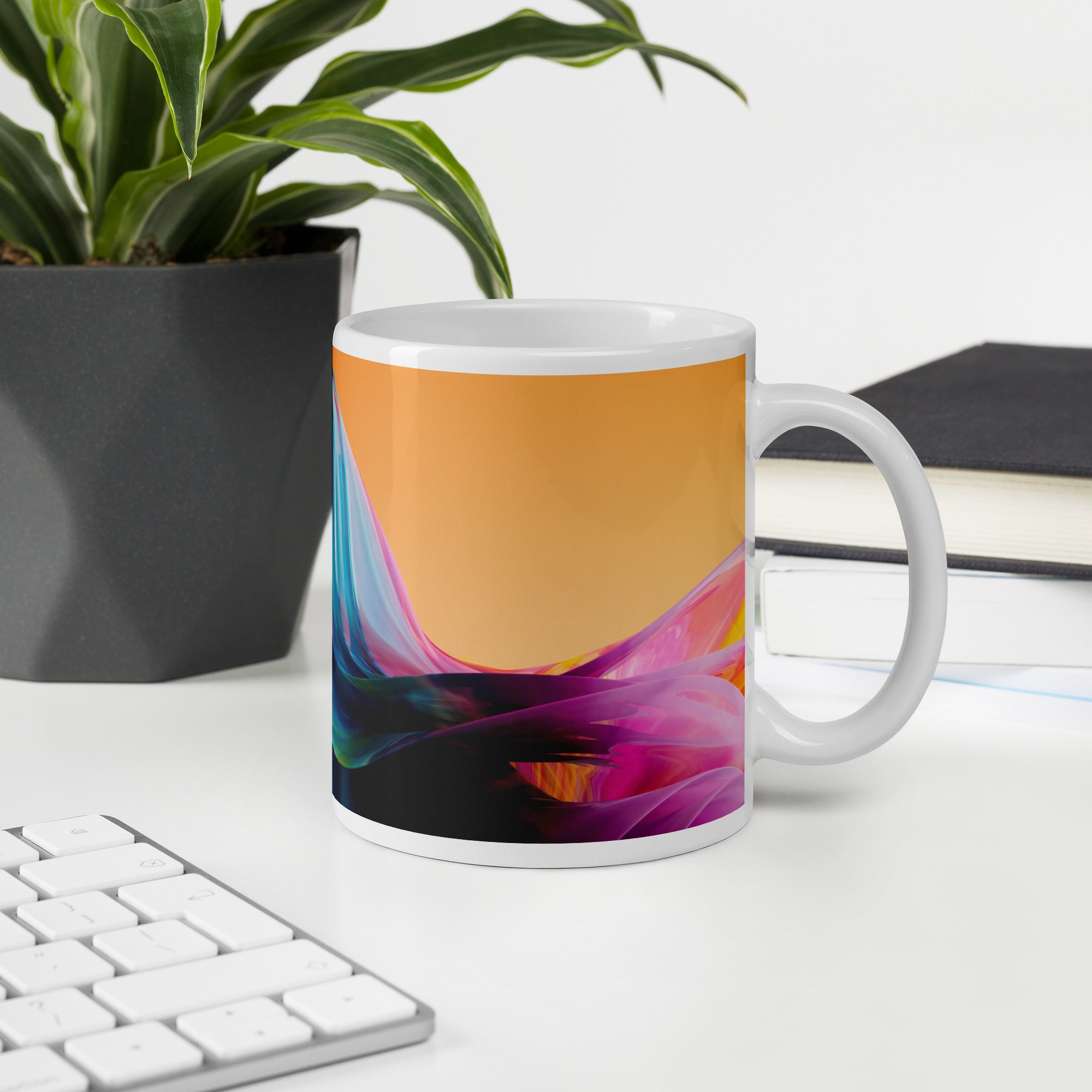 Fuel your flow with the ColorRush Ceramic Mug, featuring vibrant abstract designs that ripple with motion. From warm orange-to-yellow gradients with translucent swirls to bold red backdrops with ribbon-like teal and navy accents, each mug is a visual burst of energy.