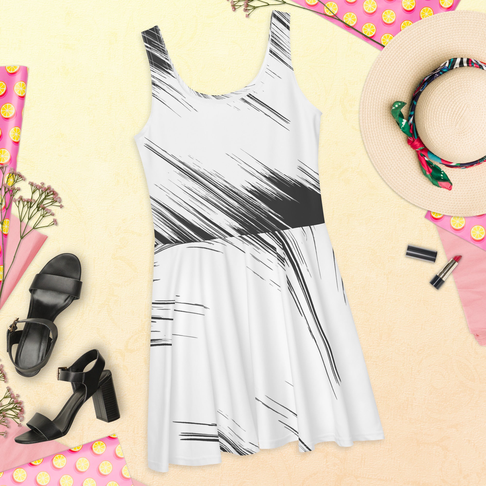 Introducing our Sleeveless Skater Dress, a true embodiment of artistic expression. This dress features an Black and White abstract design that is a testament to your unique creativity. The sleeveless cut is perfect for warm weather, while the skater silhouette adds a playful, flirty vibe. Crafted from comfortable, high-quality material, this dress ensures a flattering fit for all body types.