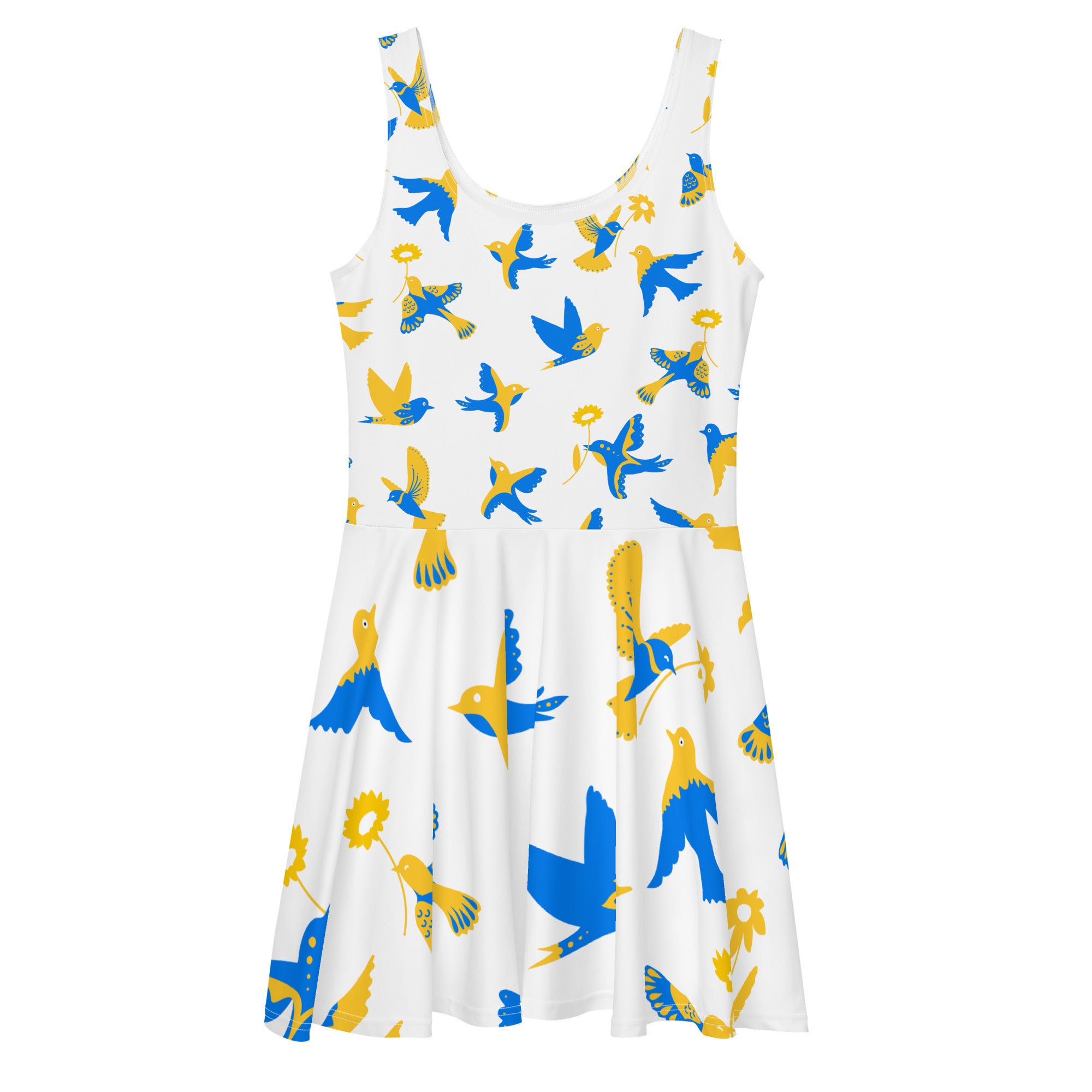 The nightingales design, a product of your imagination, adds a unique, serene twist, making this dress a standout piece in any wardrobe. Whether it’s a casual day out or a special occasion, this dress guarantees you’ll make a statement. Celebrate your individuality with our Nightingales Design Sleeveless Skater Dress.