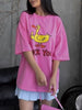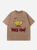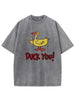 This basic-fit, oversized dark gray tee delivers unapologetic humor with cartoon chaos. Featuring a bright yellow duck flipping its middle feather and the bold red phrase “DUCK YOU!”, it’s a visual pun that turns attitude into art.