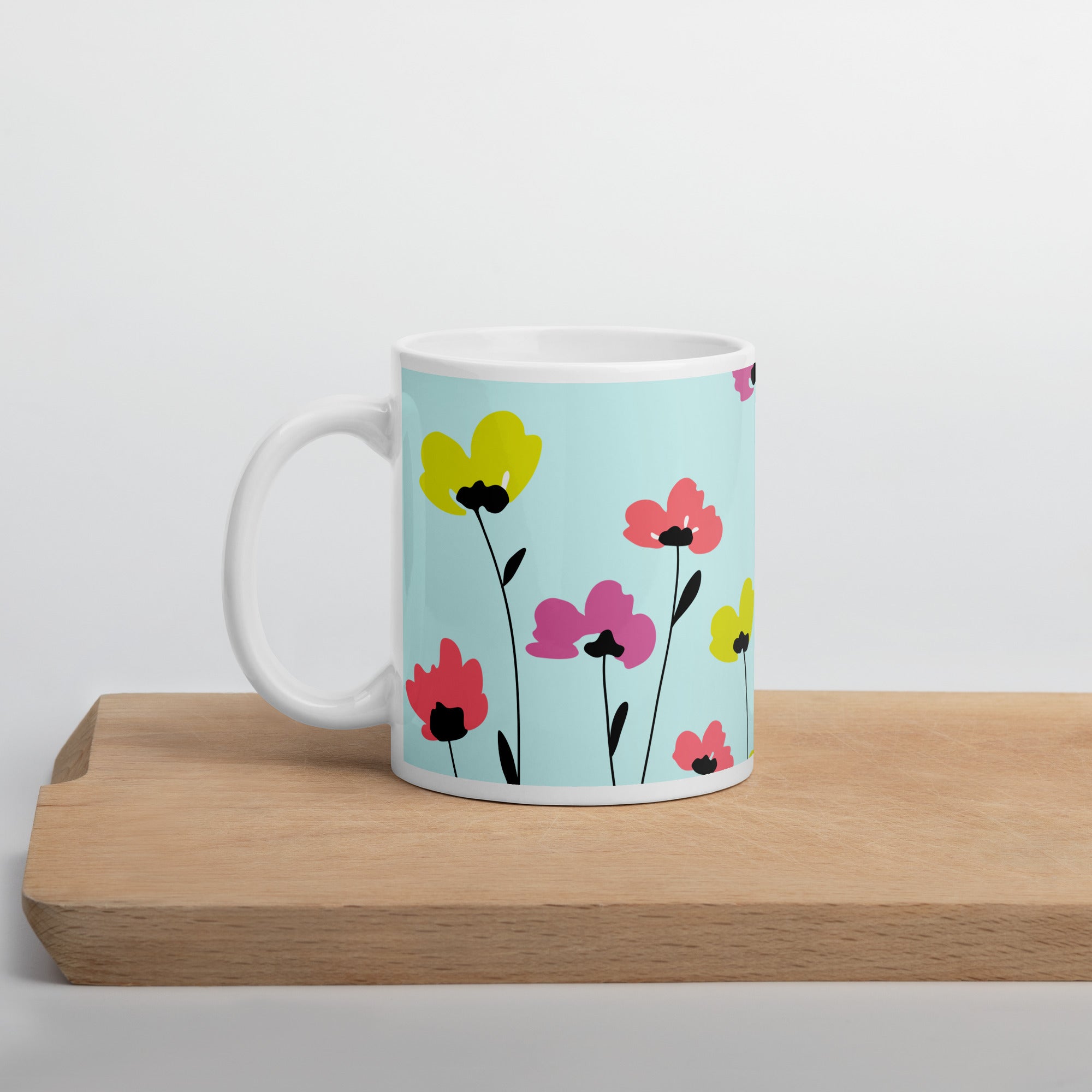 Whether you're drinking your morning coffee, evening tea, or something in between—this mug's for you! It's sturdy and glossy with a vivid Flower print that'll withstand the microwave and dishwasher.