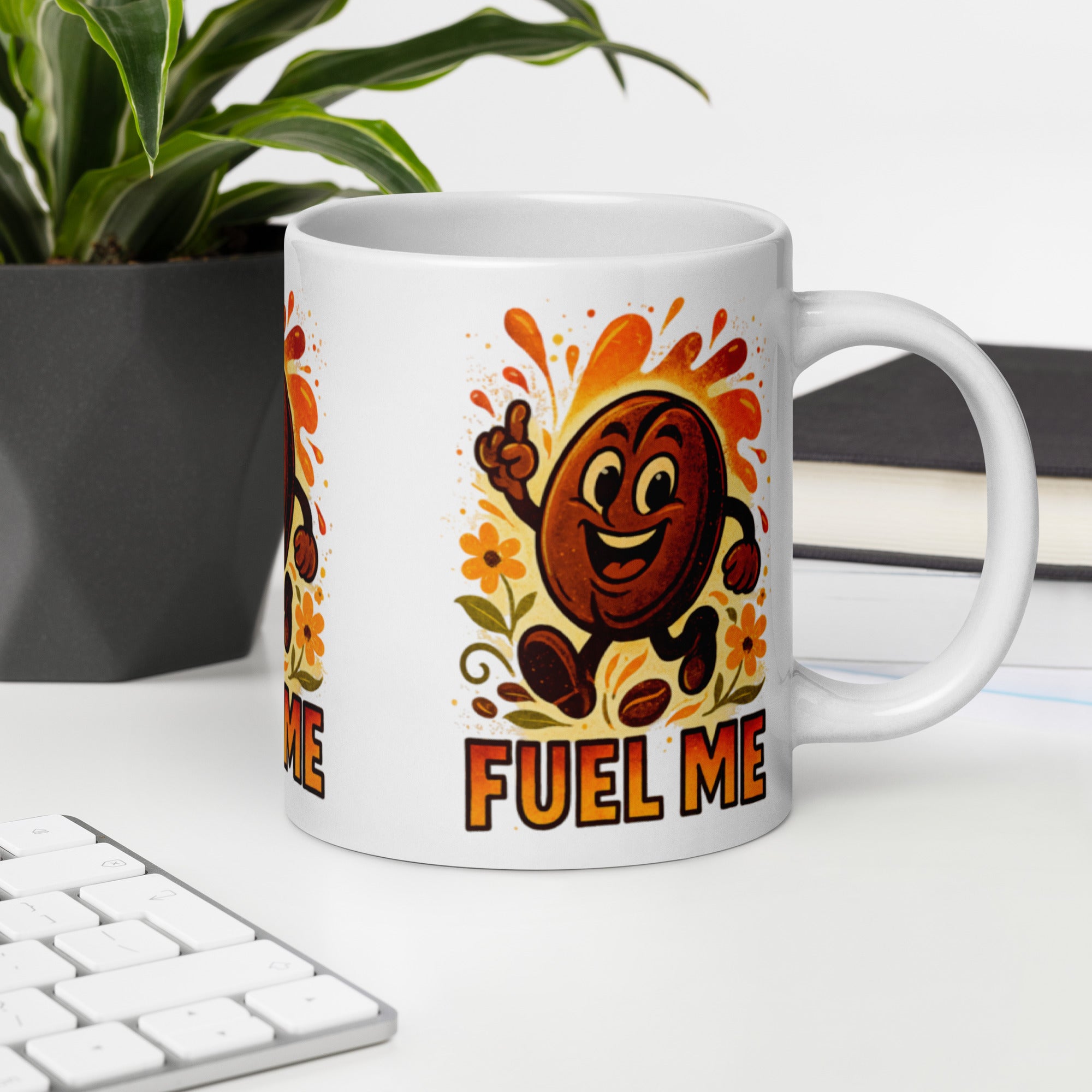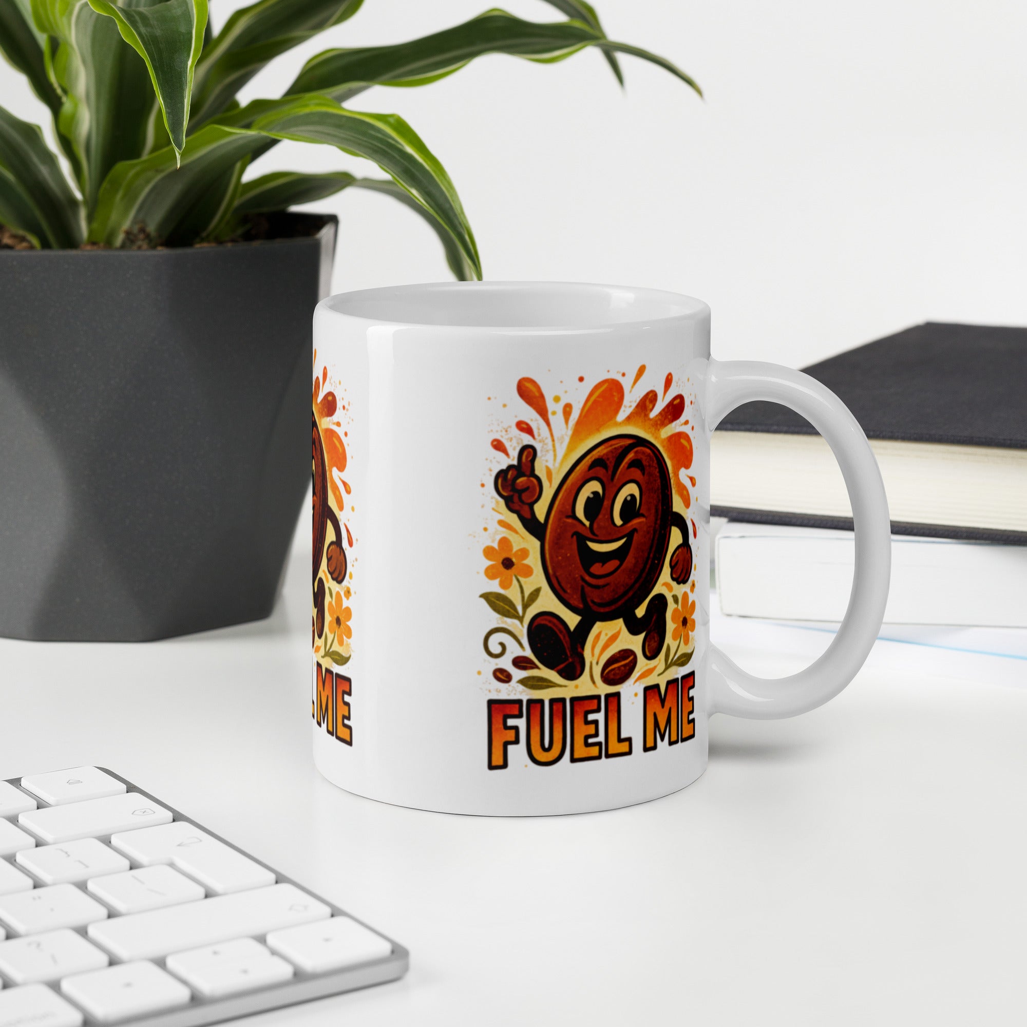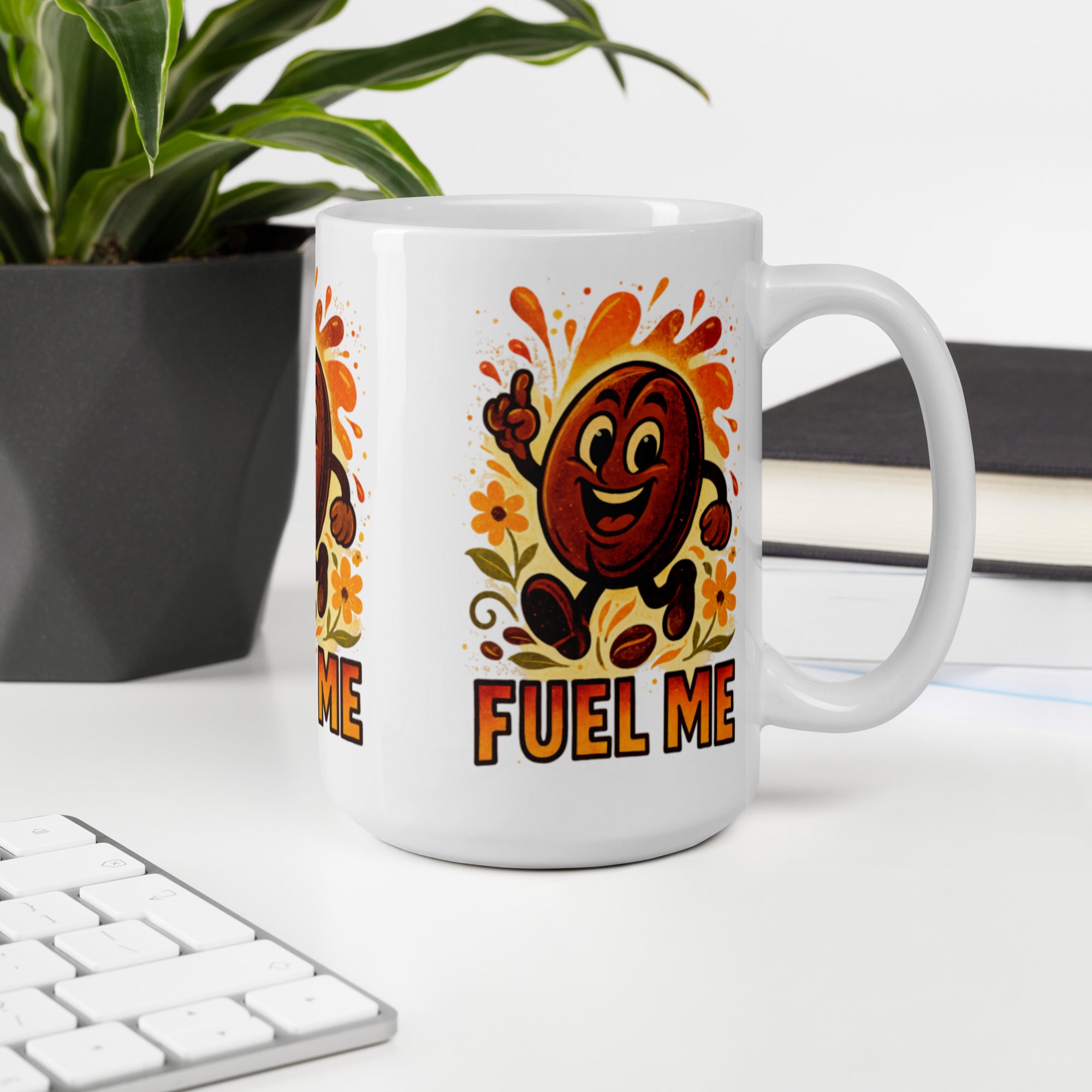 Meet your morning motivator: the Fuel Me Ceramic Mug. Featuring a cheerful coffee bean character surrounded by floral splashes and swirling steam, this design radiates energy, humor, and caffeine-fueled joy. The bold “FUEL ME” text says it all—this mug is made for go-getters and bean believers.