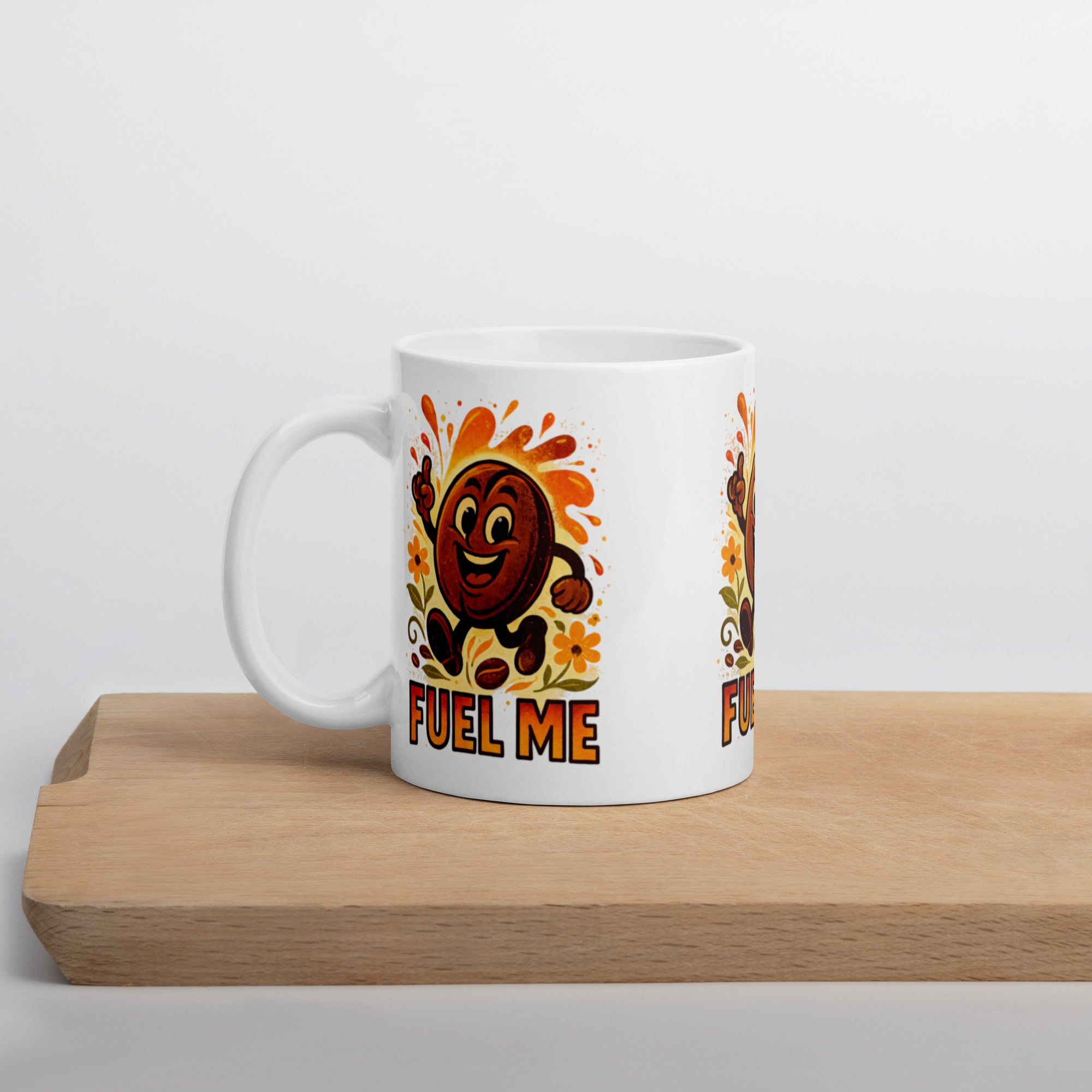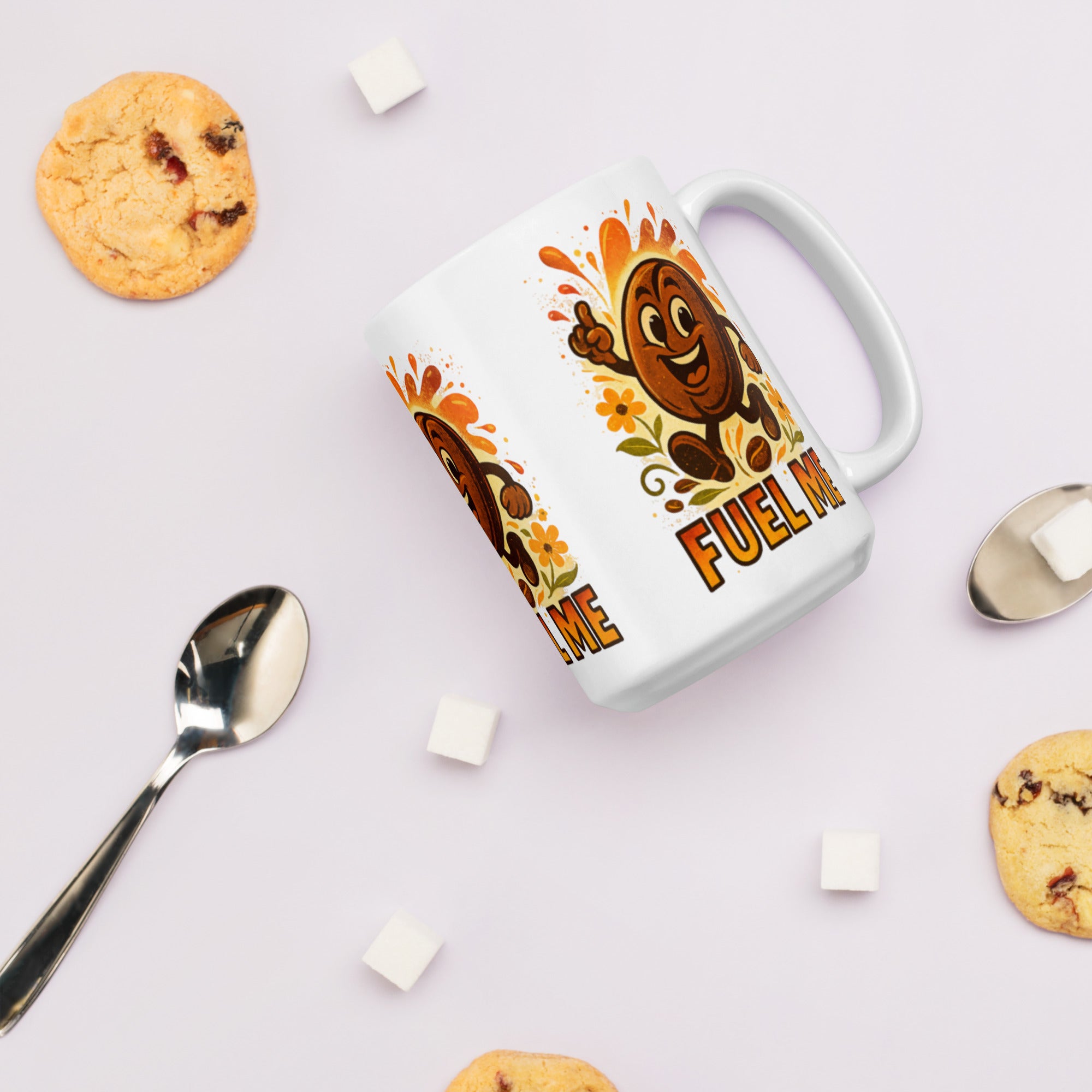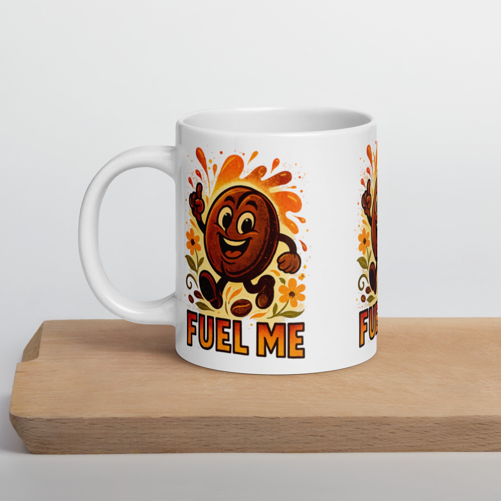 Meet your morning motivator: the Fuel Me Ceramic Mug. Featuring a cheerful coffee bean character surrounded by floral splashes and swirling steam, this design radiates energy, humor, and caffeine-fueled joy. The bold “FUEL ME” text says it all—this mug is made for go-getters and bean believers.