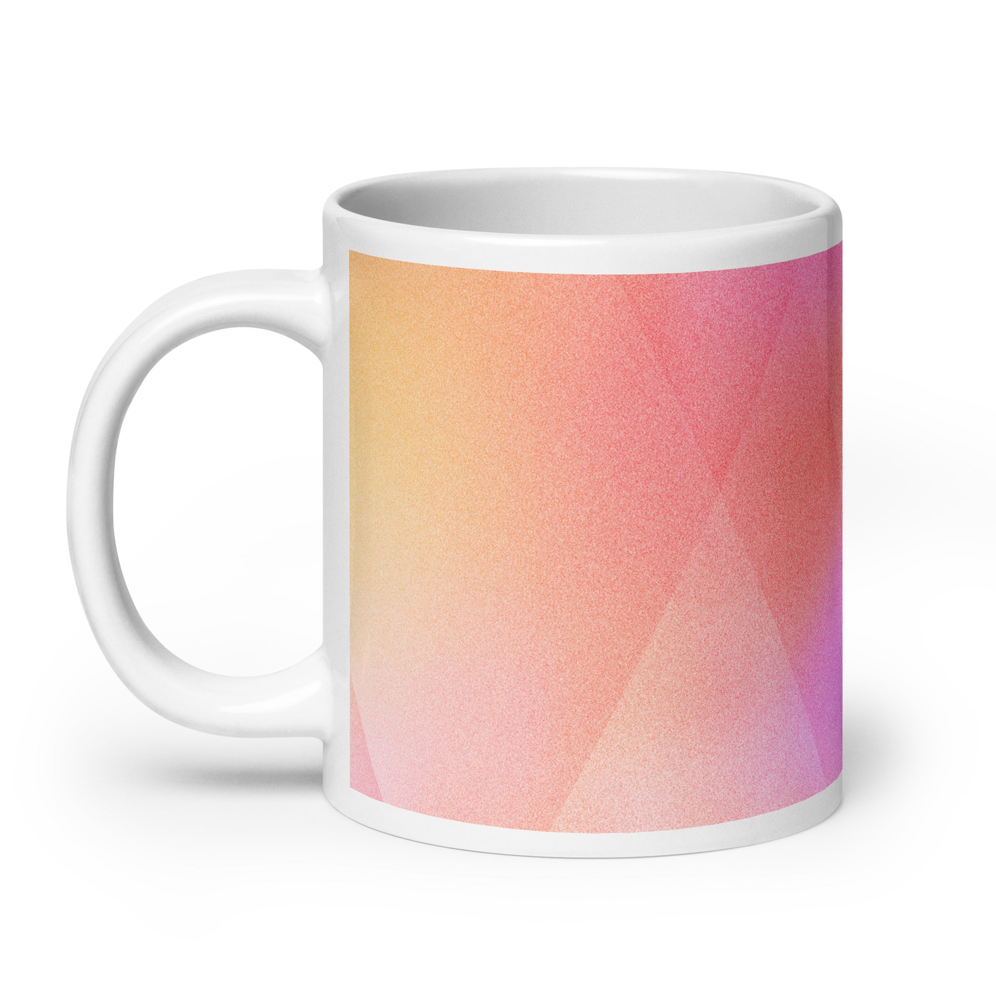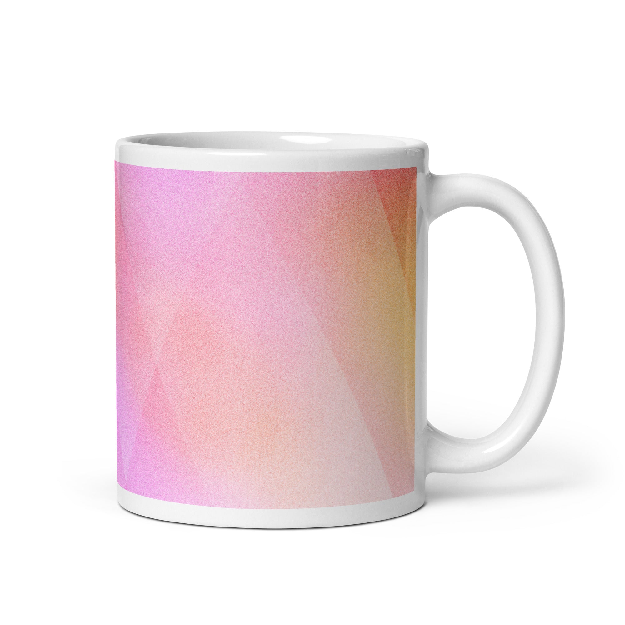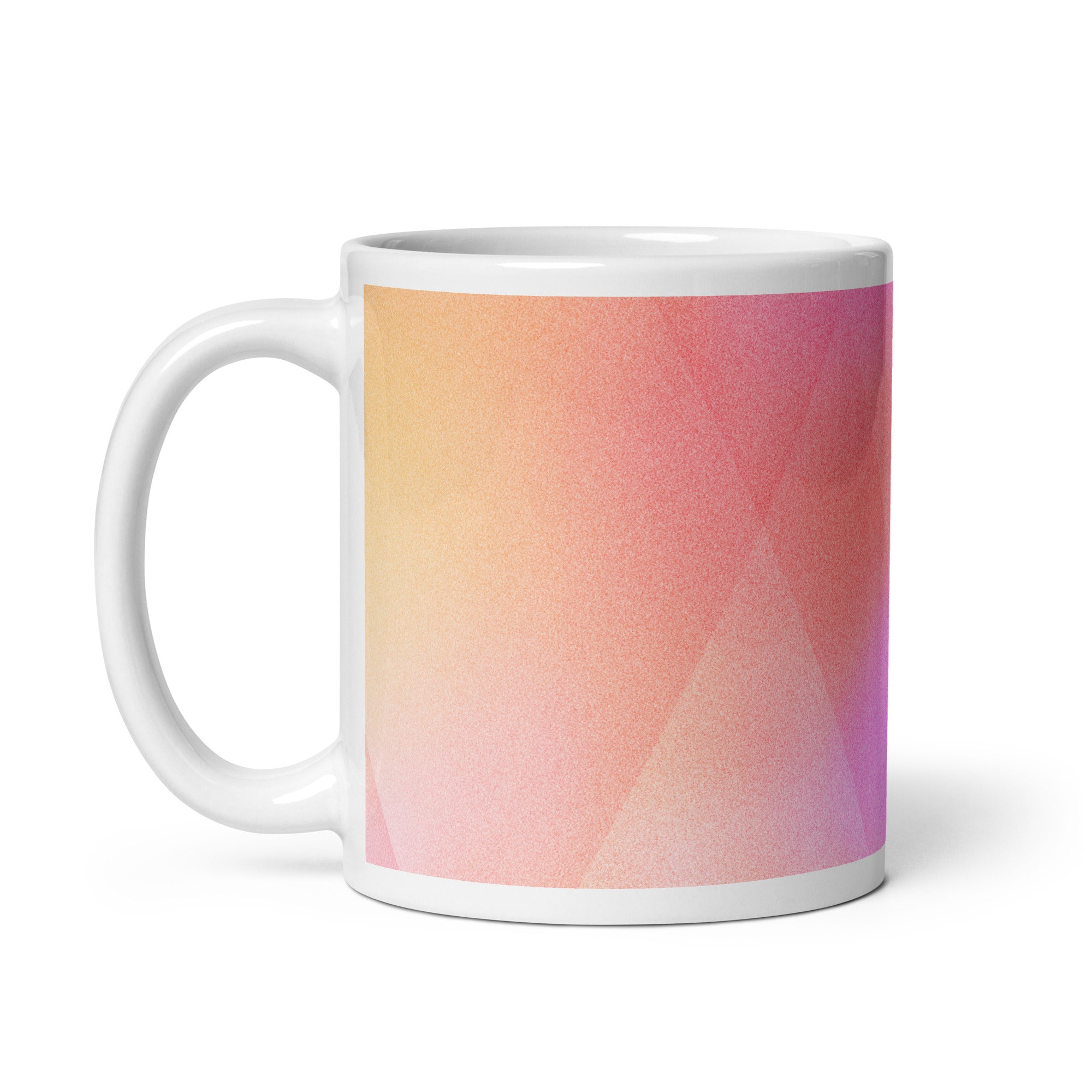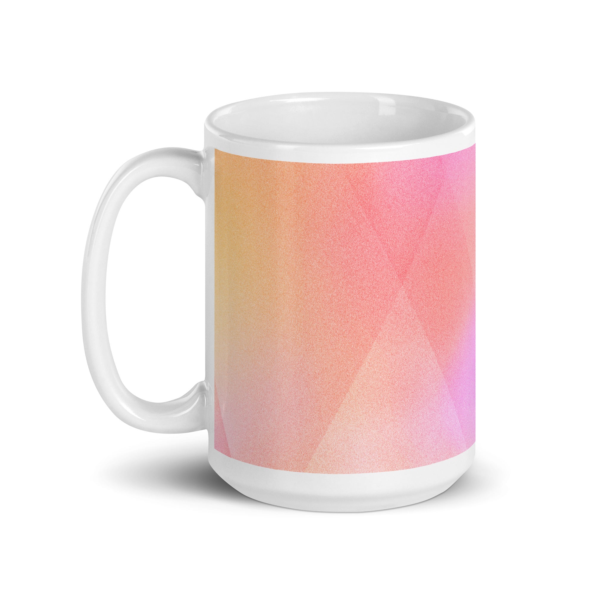 Sip in style with the PrismFade Ceramic Mug, where overlapping triangular gradients in pink, orange, and purple create a dynamic, modern aesthetic. Whether you're powering through your morning brew or winding down with evening tea, this mug brings geometric harmony to every moment.