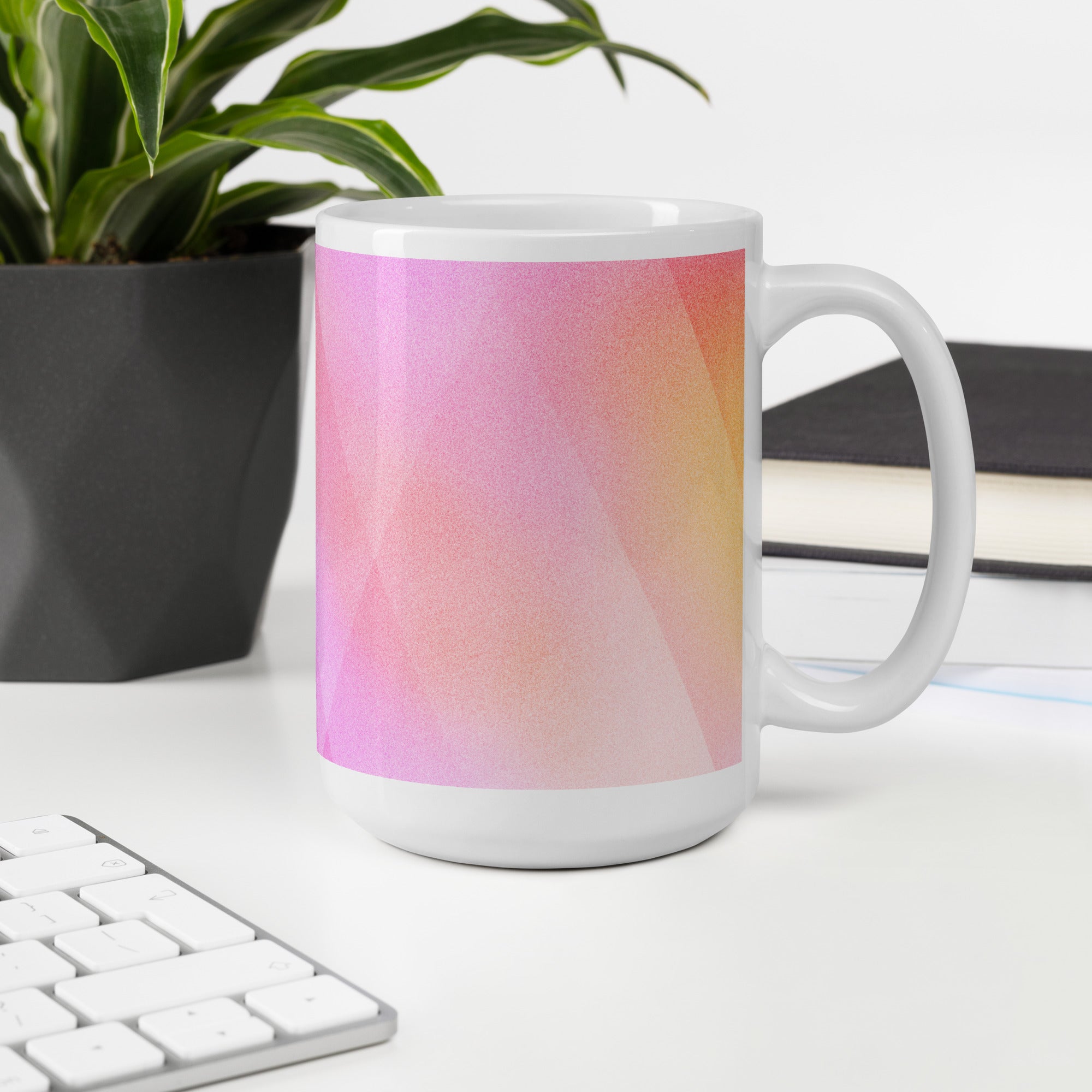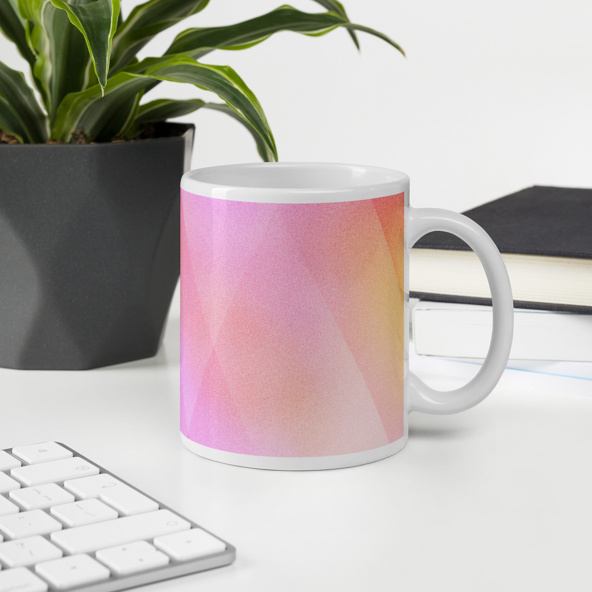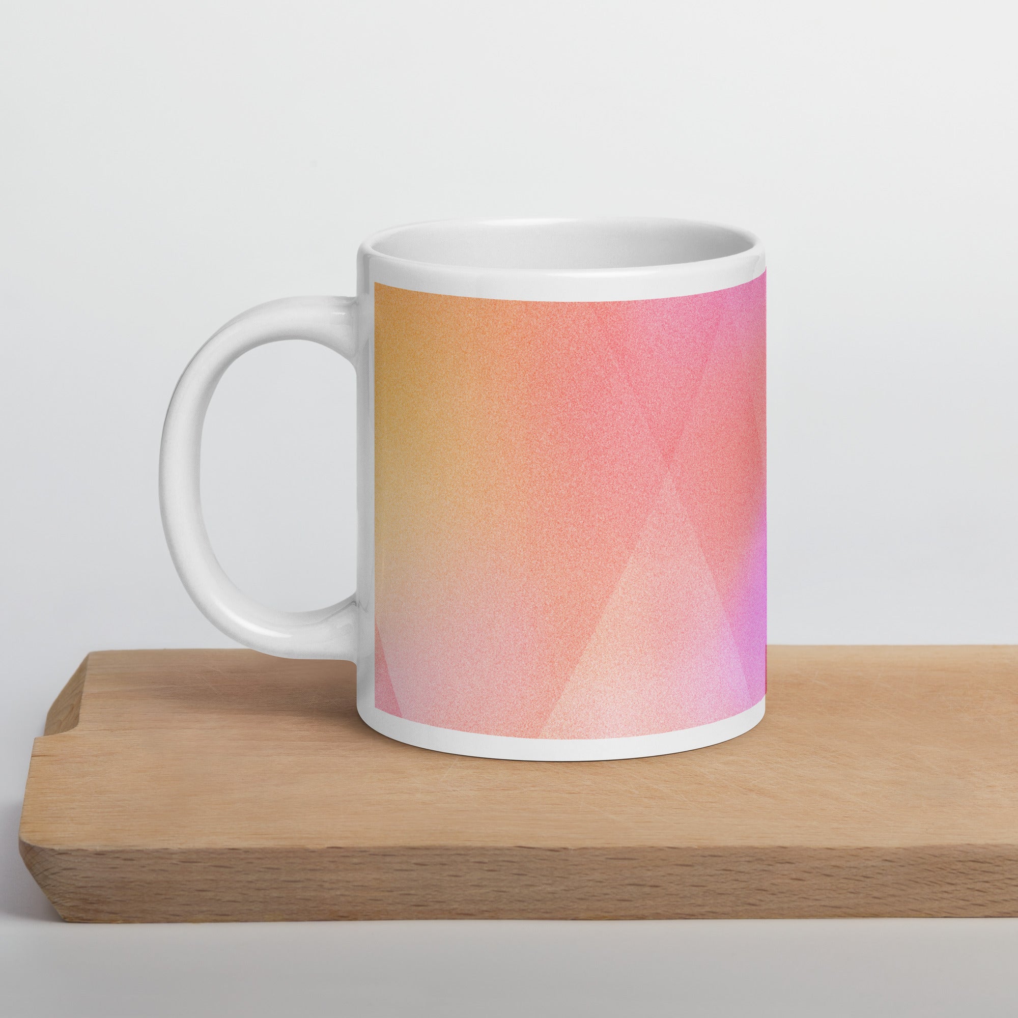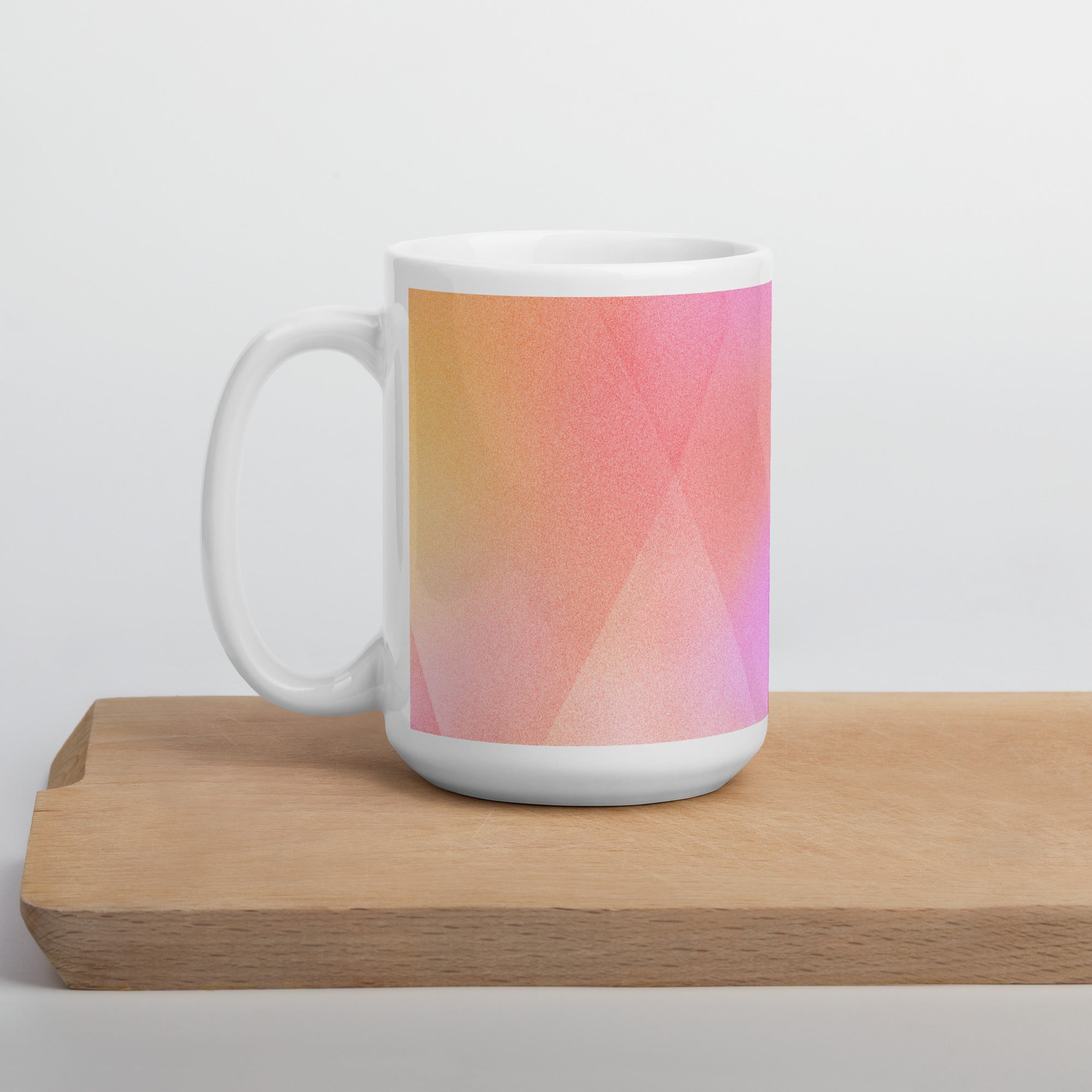 Sip in style with the PrismFade Ceramic Mug, where overlapping triangular gradients in pink, orange, and purple create a dynamic, modern aesthetic. Whether you're powering through your morning brew or winding down with evening tea, this mug brings geometric harmony to every moment.