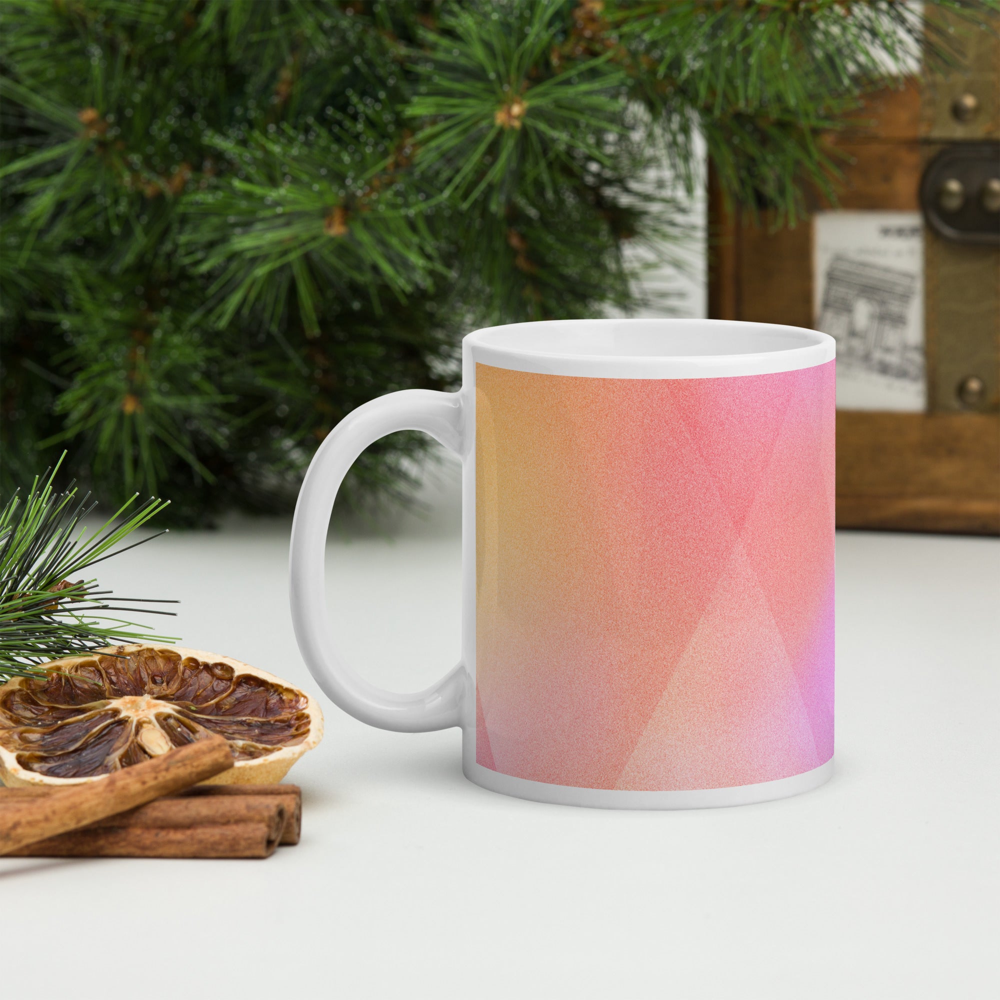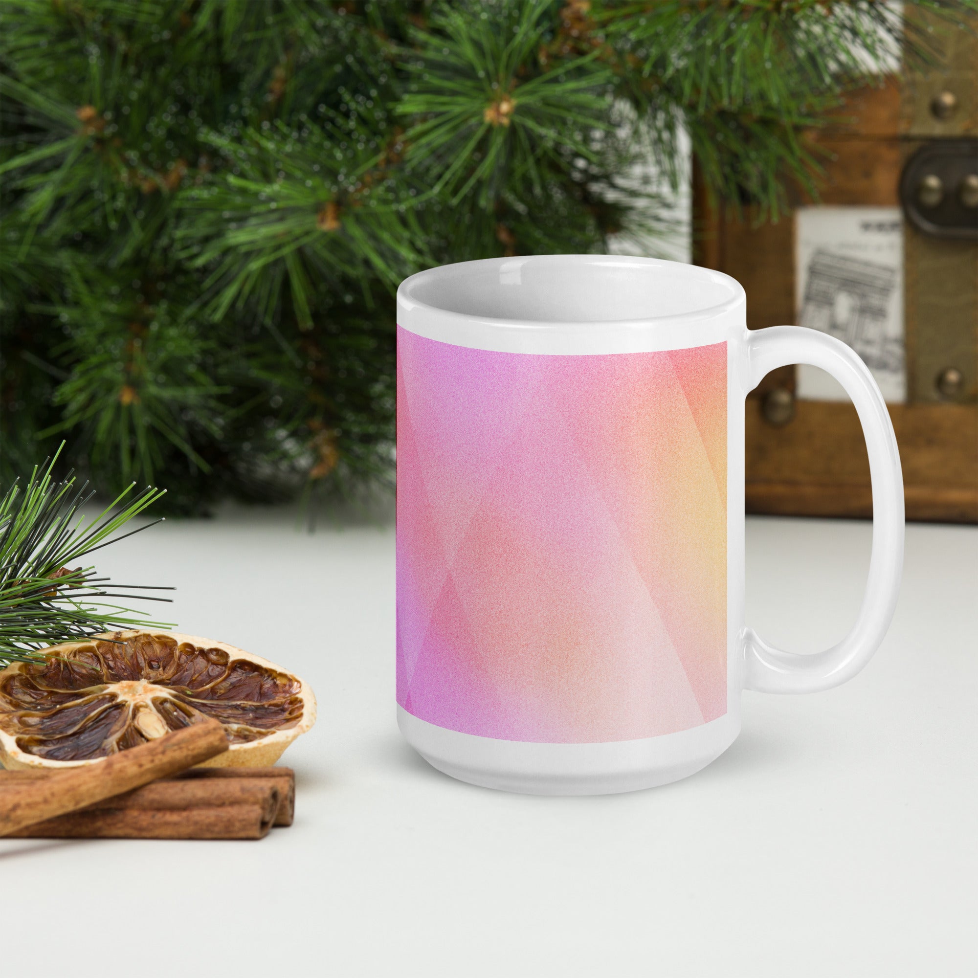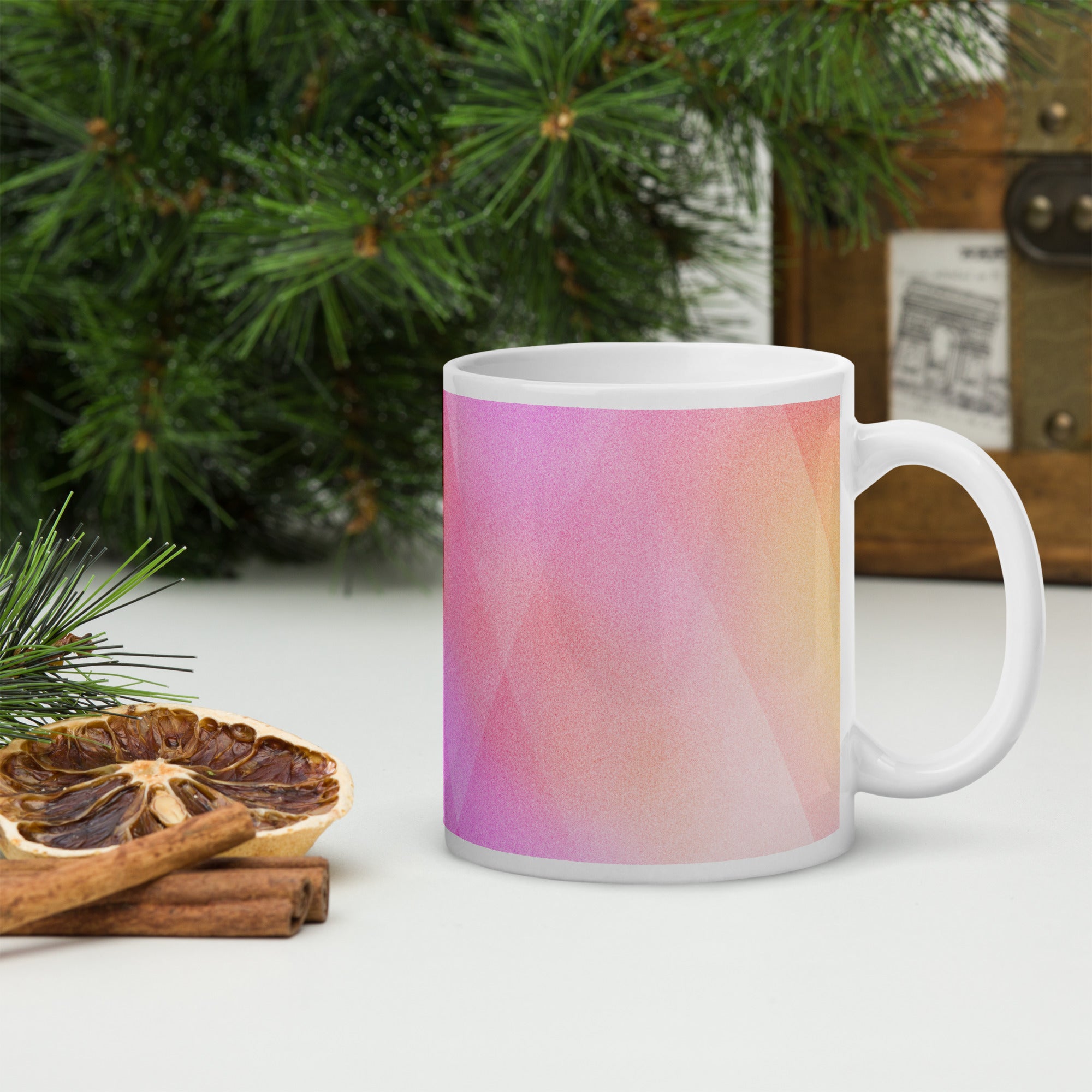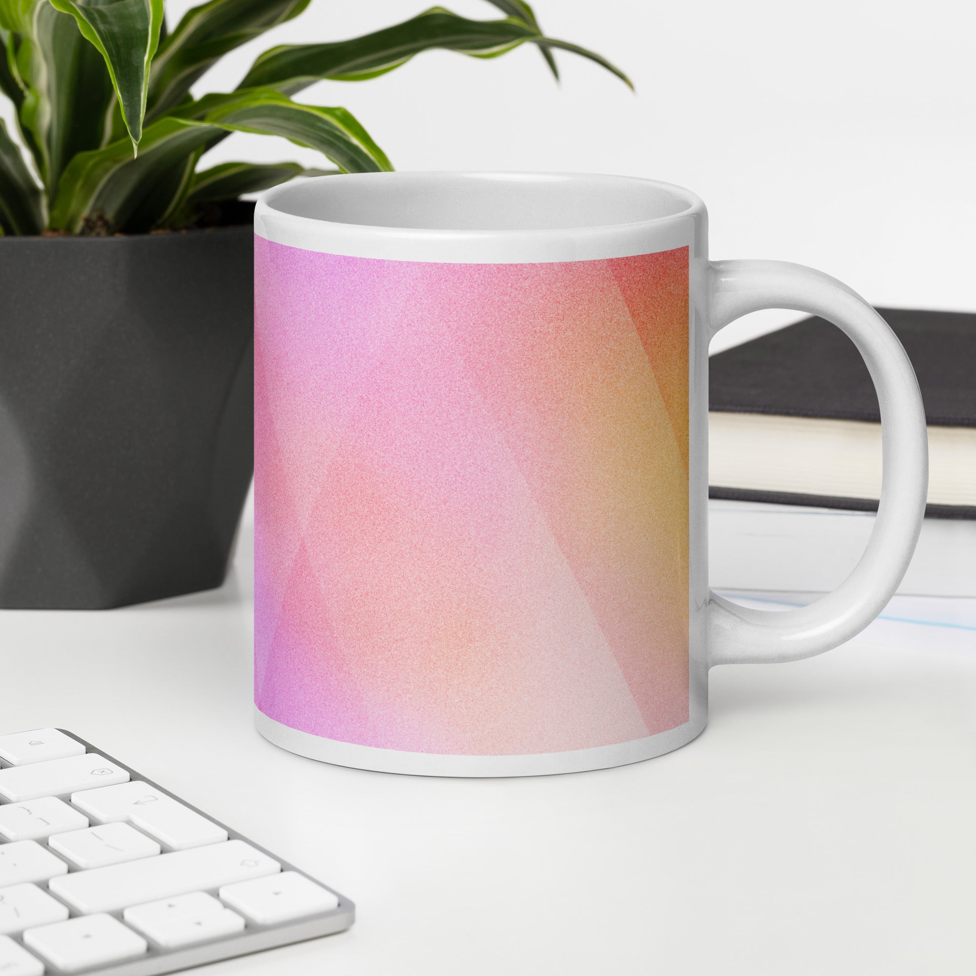 Sip in style with the PrismFade Ceramic Mug, where overlapping triangular gradients in pink, orange, and purple create a dynamic, modern aesthetic. Whether you're powering through your morning brew or winding down with evening tea, this mug brings geometric harmony to every moment.