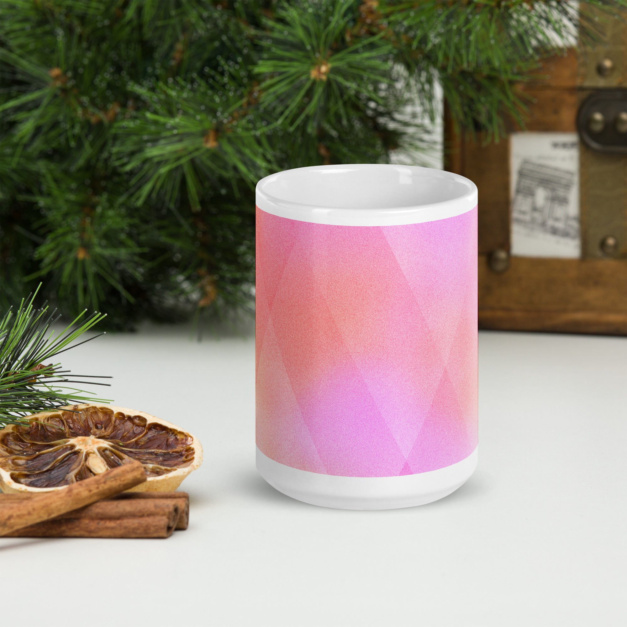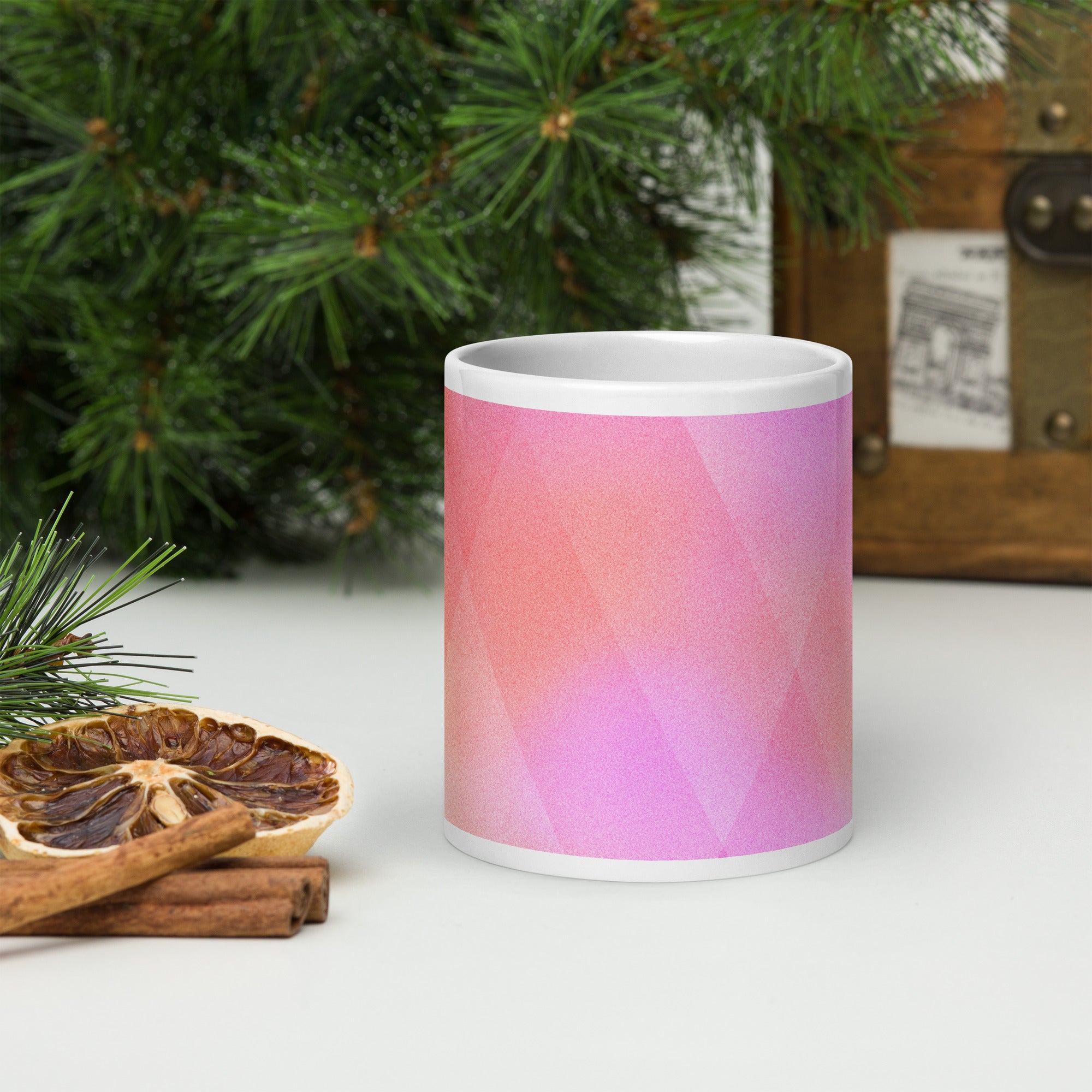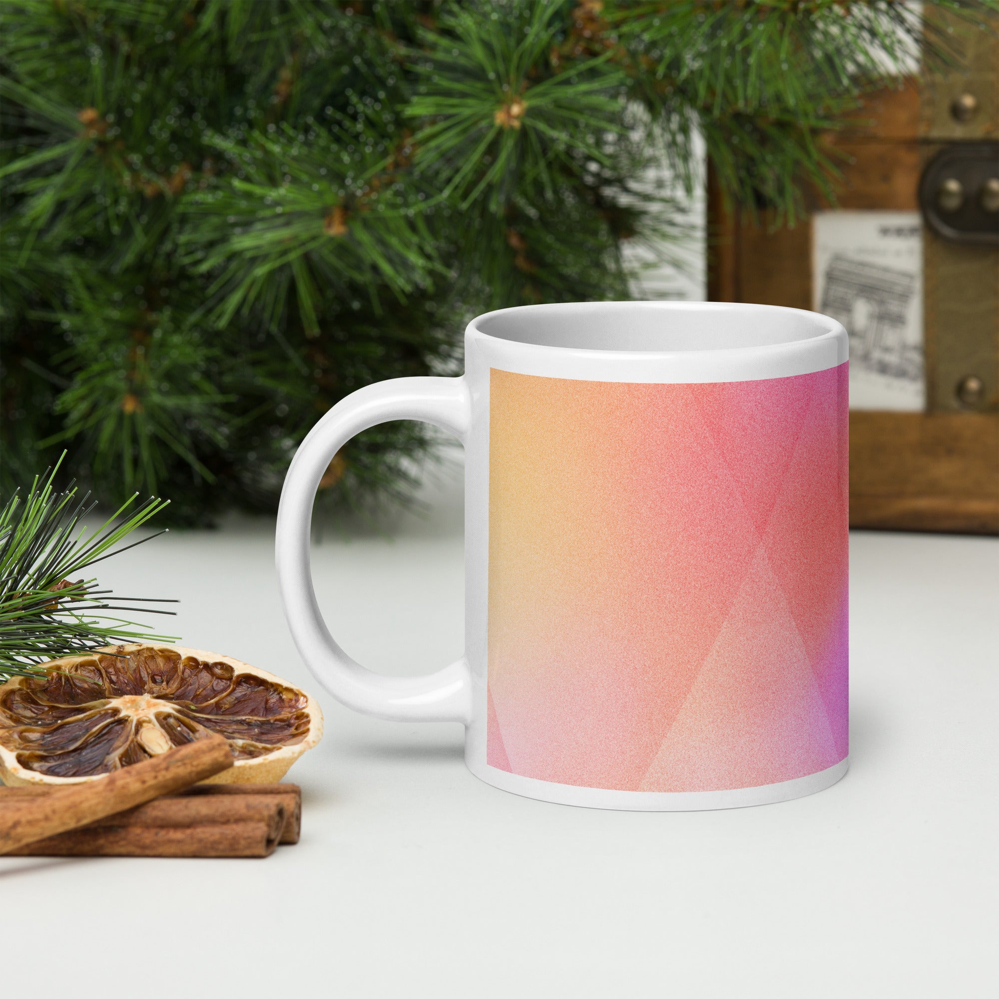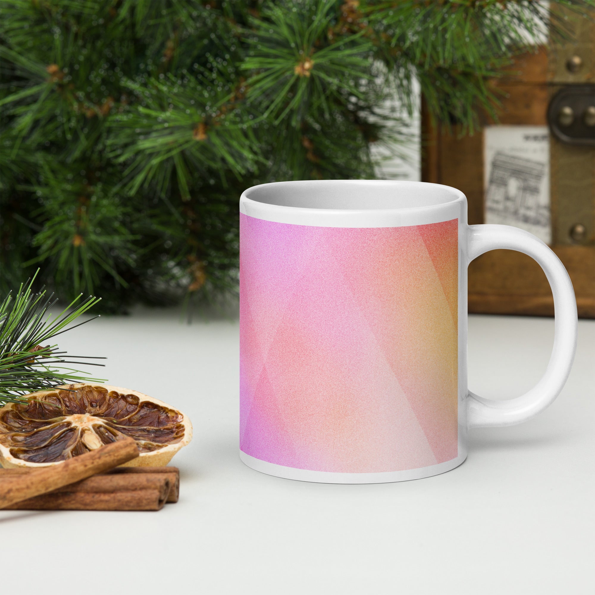 Sip in style with the PrismFade Ceramic Mug, where overlapping triangular gradients in pink, orange, and purple create a dynamic, modern aesthetic. Whether you're powering through your morning brew or winding down with evening tea, this mug brings geometric harmony to every moment.
