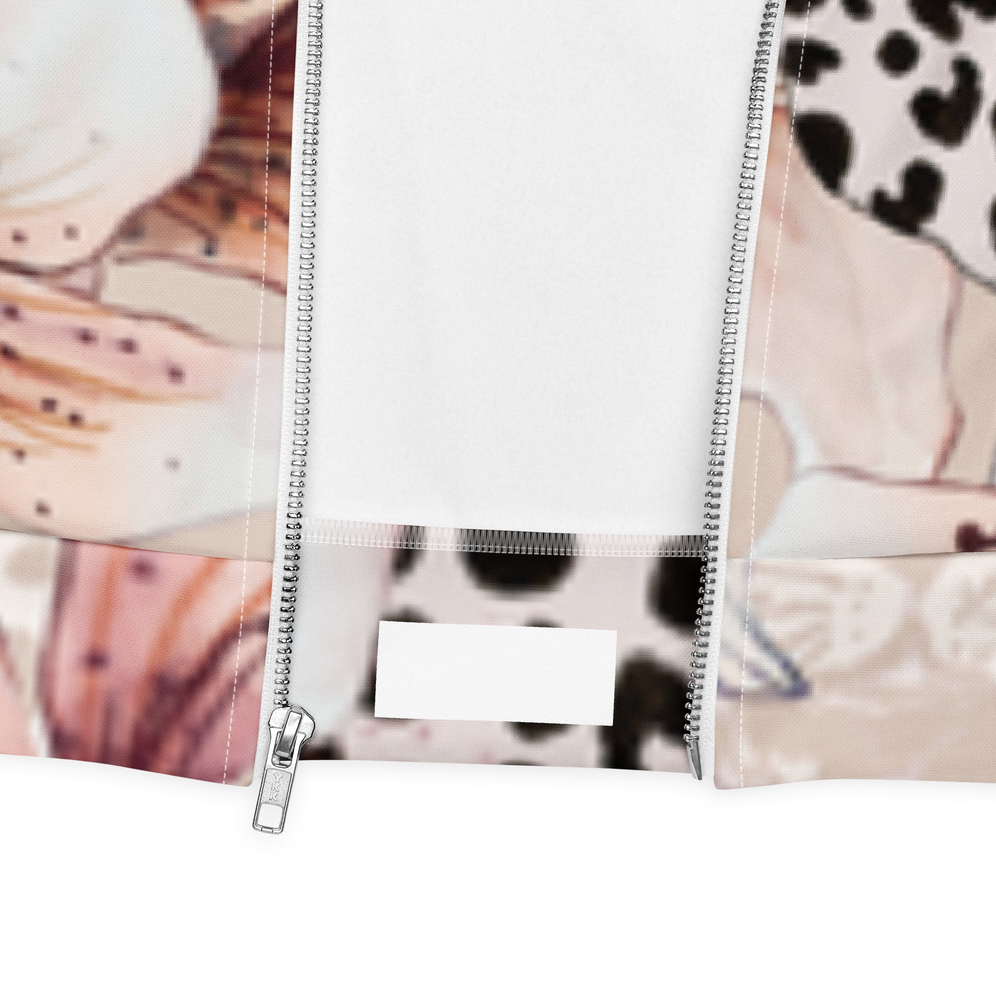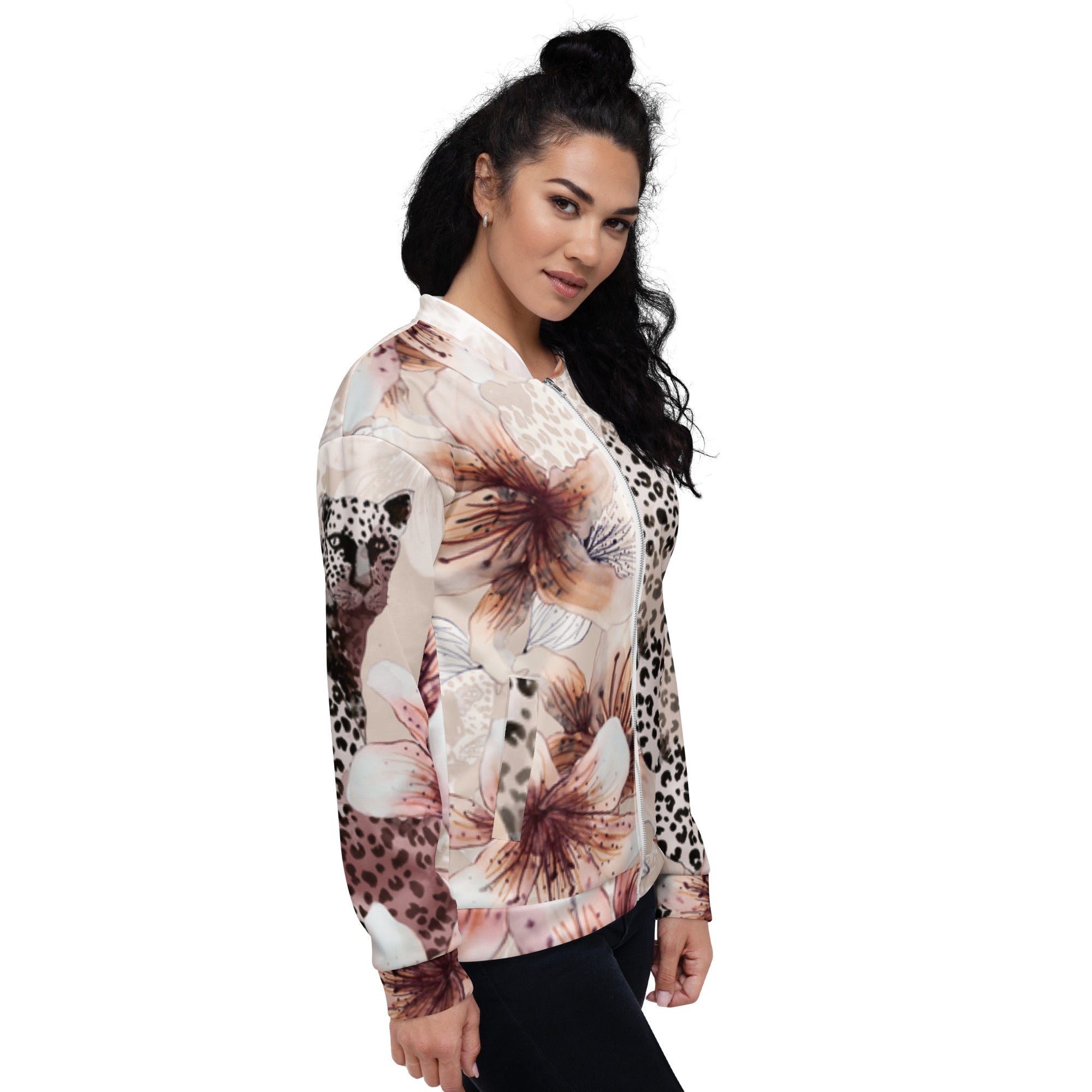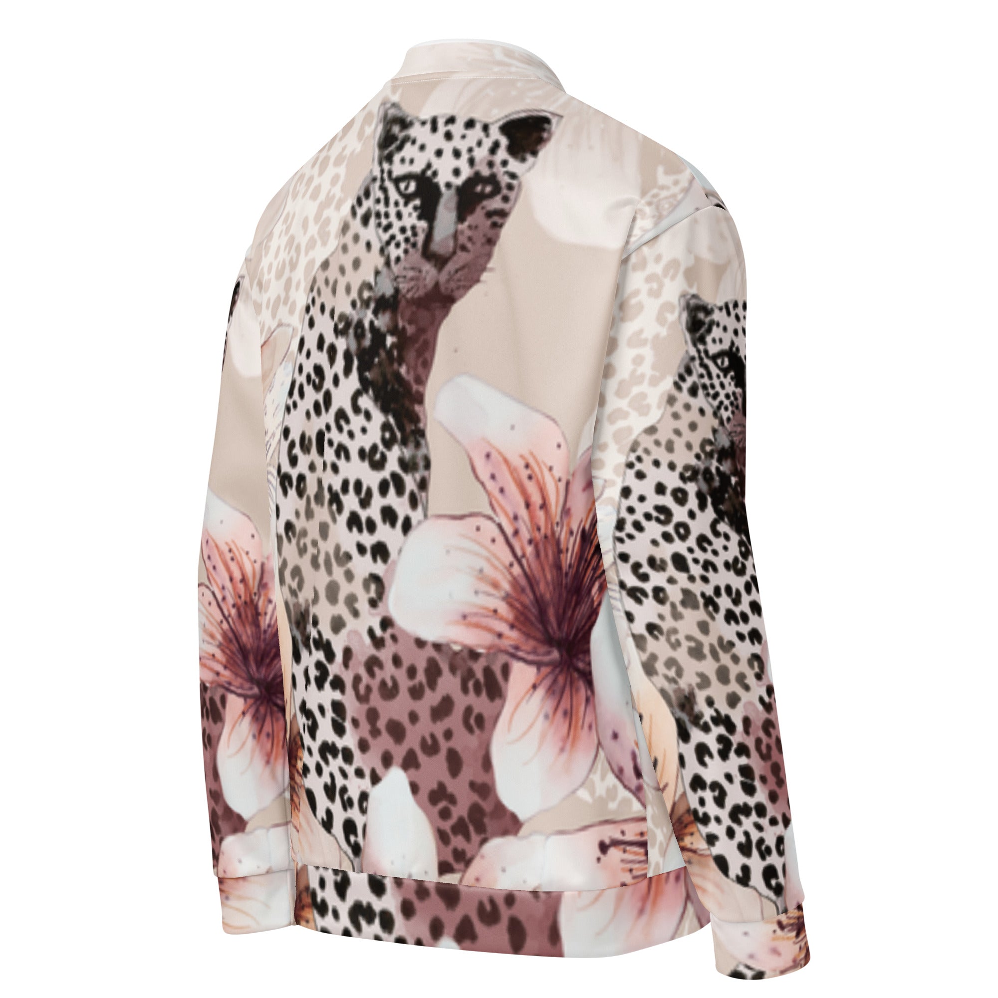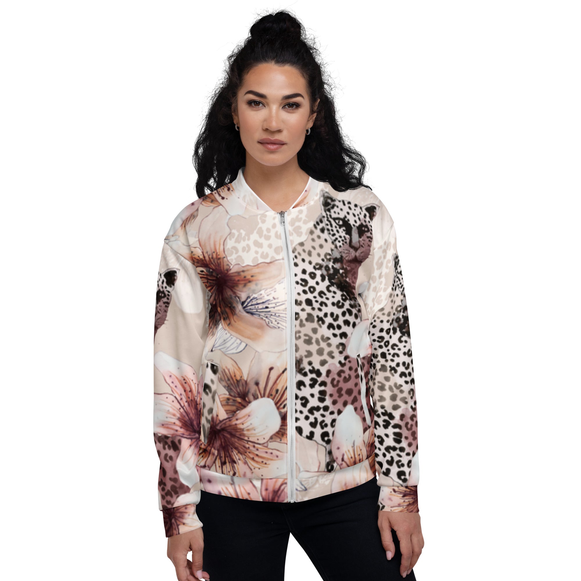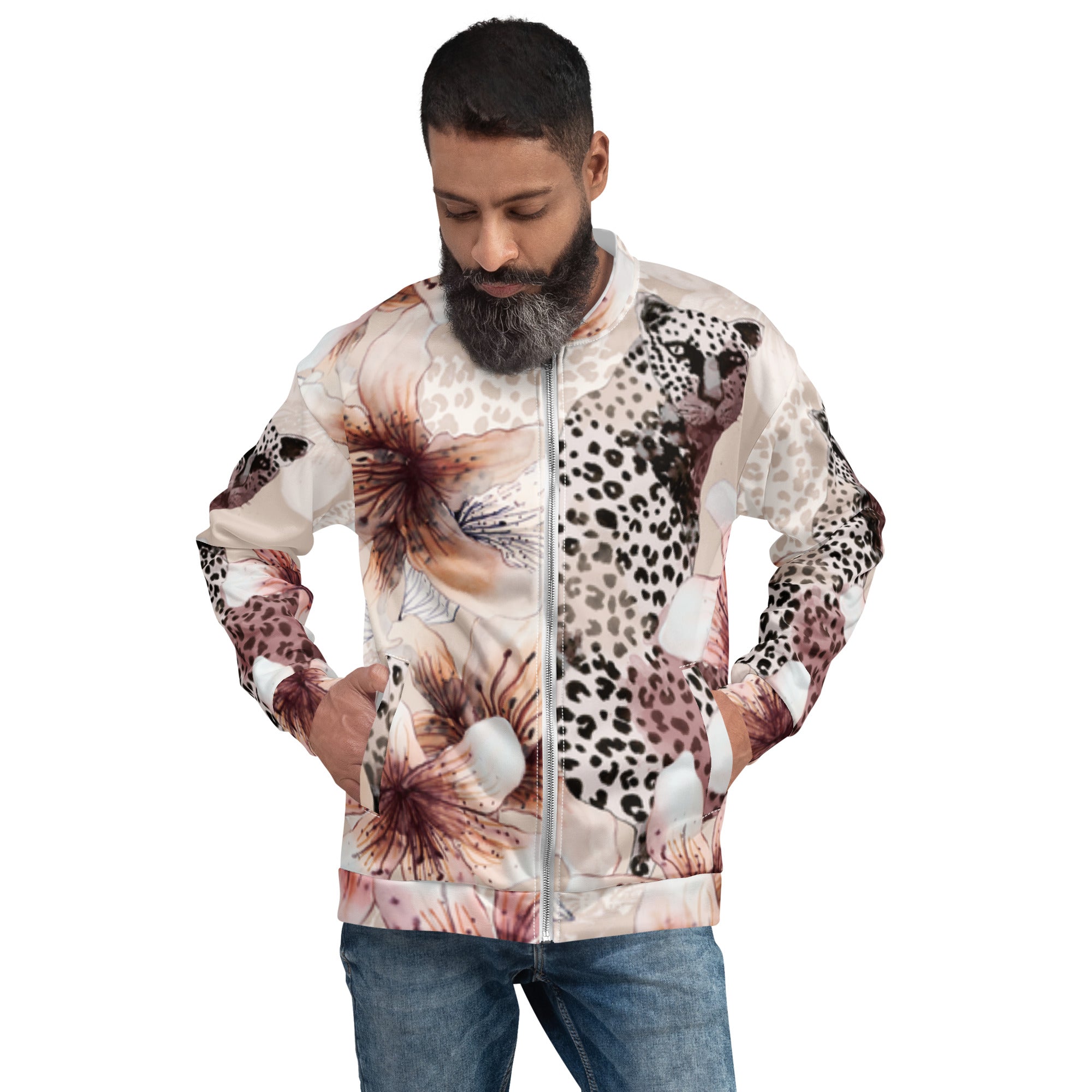 Turn heads with this fierce-meets-floral masterpiece. Featuring expressive leopards and soft watercolor lilies, this jacket blends wild energy with botanical elegance—crafted for comfort, built to stun.