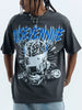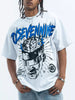 Turn heads and bend minds with this oversized graphic tee, where streetwear meets surreal sci-fi. The design features a stylized head with exposed brain and visor-like shades, surrounded by celestial symbols like stars, moons, and comets. Bold jagged lettering spells "OSEVENNINE" across the top, while edgy text like "SPID FUCKING STINE" adds underground grit. The white backdrop lets the vibrant colors and chaotic energy pop.
