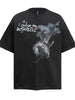This oversized tee hits hard with a graphic that fuses music and mindset. A stylized electric guitar rises through smoky textures, surrounded by musical notes and the bold mantra: “strange time BEFEARLESS..” — a call to stay loud, stay brave, and keep playing through the chaos.
