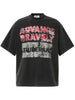 This oversized black tee delivers a layered graphic that speaks to strength and complexity. Bold red-and-white distressed text declares “ADVANCE BRAVELY,” while script overlays and the word “TOLERANT” add depth and duality — a visual tension between resilience and grace. The washed texture and mixed typography give it a raw, urban edge.