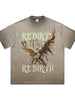 Make a statement with this oversized men's graphic tee, featuring a fierce phoenix-like bird with outstretched wings in rich tones of brown and gold. Framed by the word "REBIRTH" in stylized gothic lettering, this design channels transformation, strength, and bold individuality. The dramatic artwork and moody palette give it a streetwear-meets-symbolism vibe that’s both visually striking and conceptually deep.