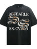 Strike a pose with this basic-fit graphic tee, featuring two intricately intertwined snakes across the chest in rich shades of black, white, and brown. The serpentine design is flanked by bold serif text — “BEEEARLE” above and “SS. CVESO” below — creating a mysterious, high-impact visual that blends mythic energy with modern edge.