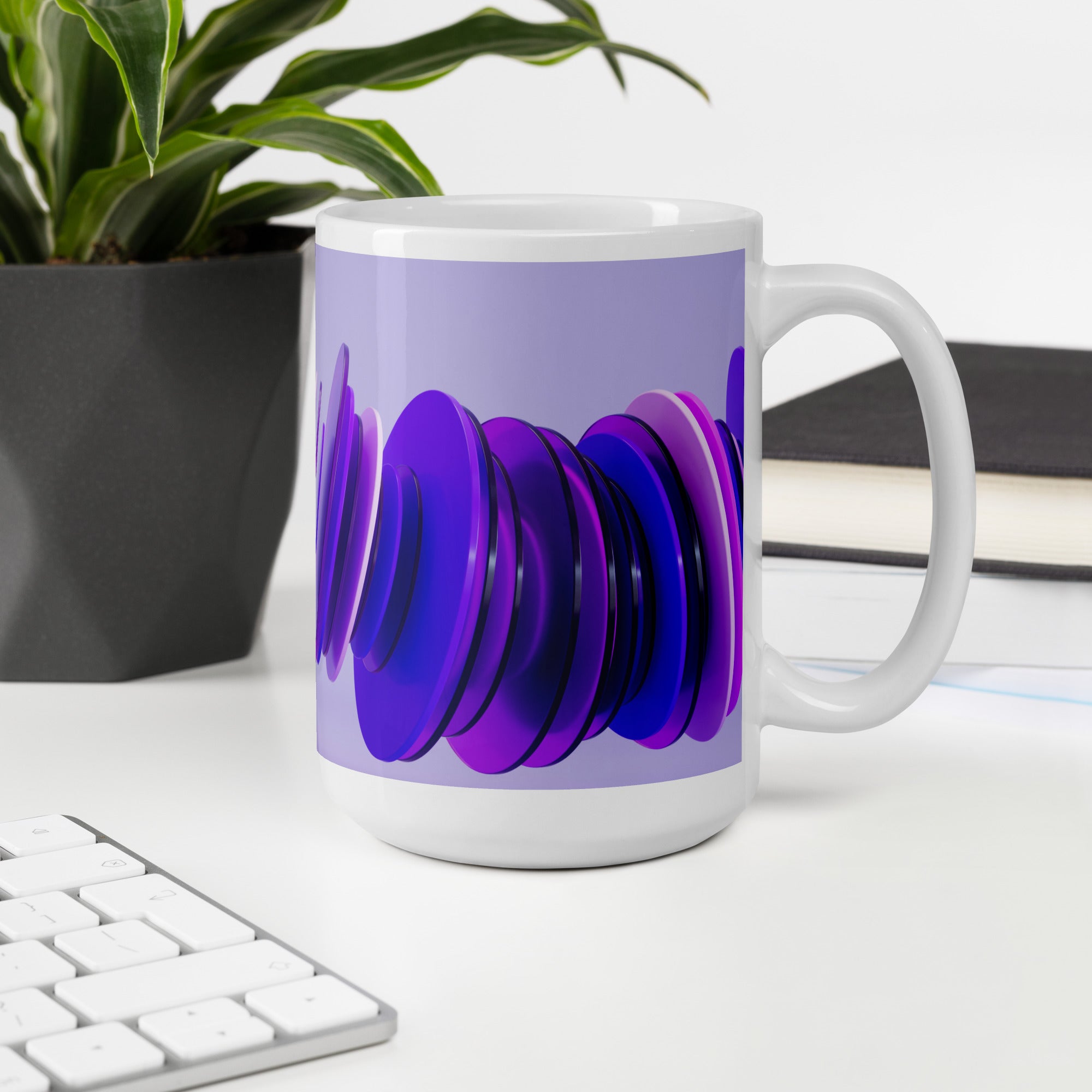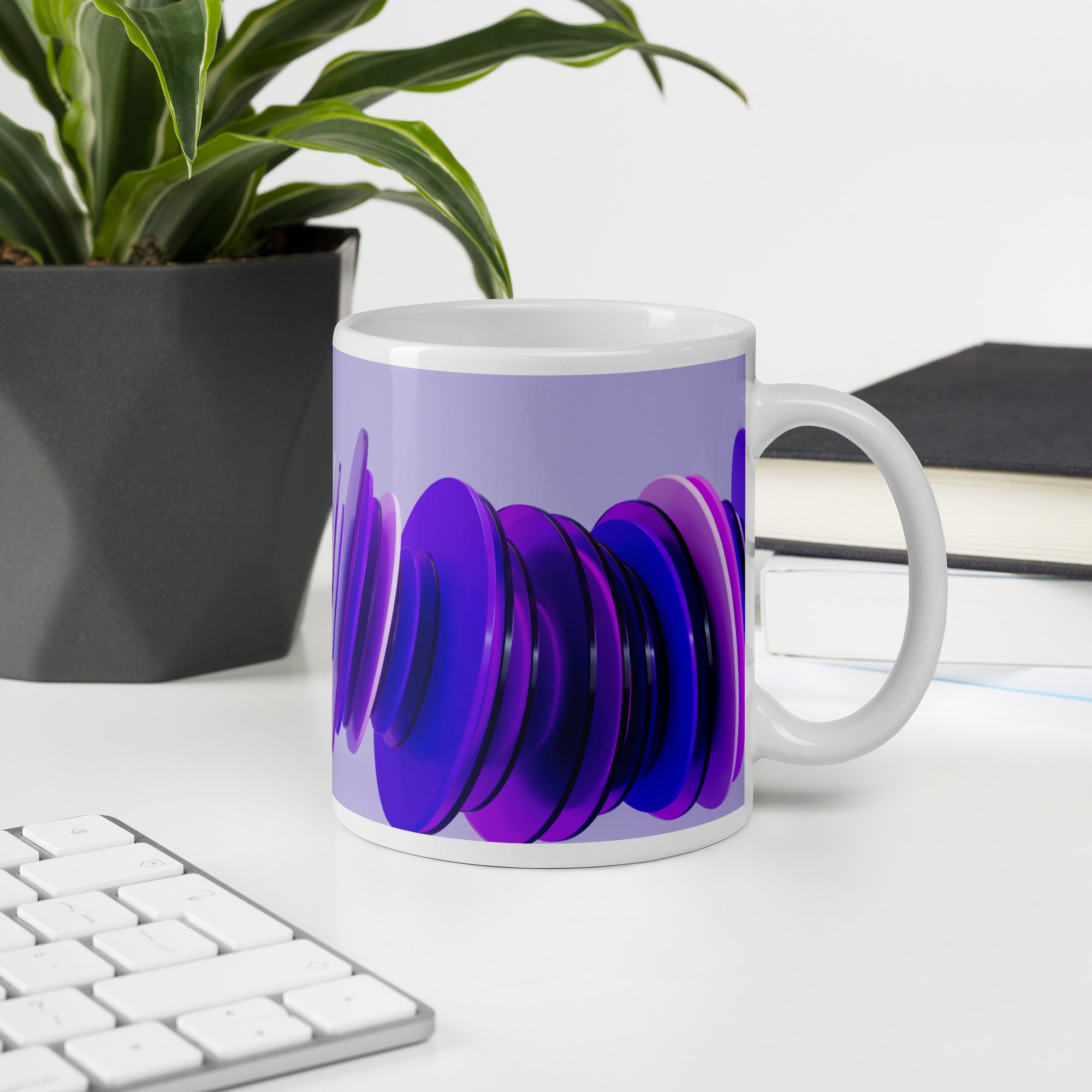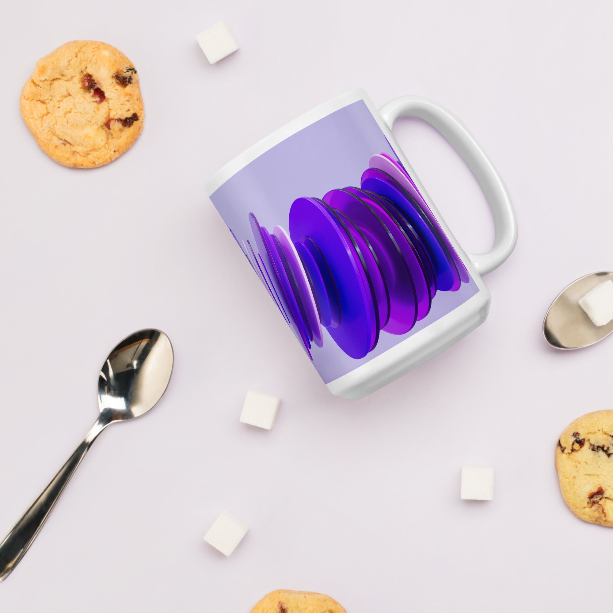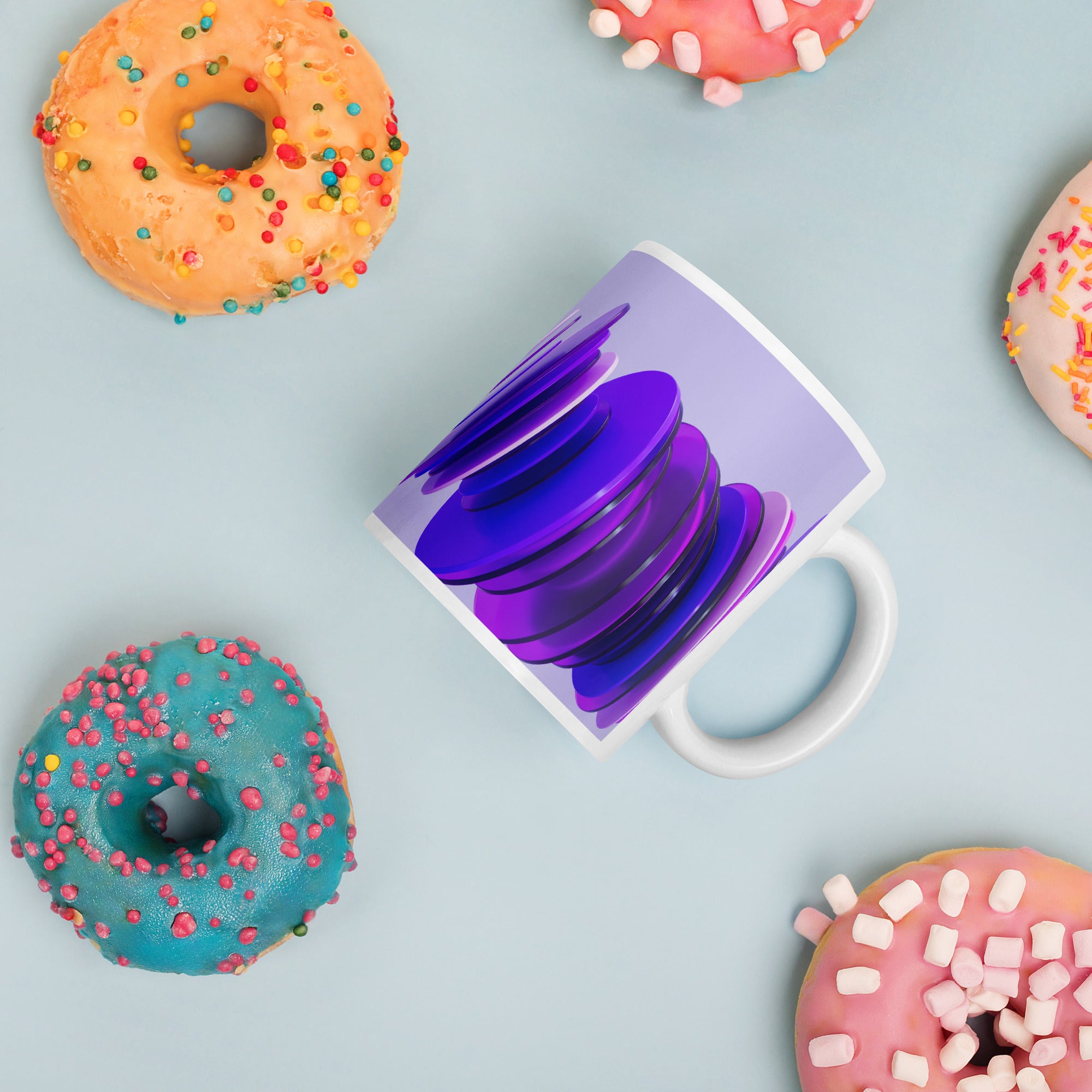 Bring a touch of modern rhythm to your morning ritual with the OrbitFlow Ceramic Mug, featuring a layered design of overlapping circles in rich purples, blues, and blacks. The abstract pattern evokes motion and depth, making each sip feel like part of a visual meditation.