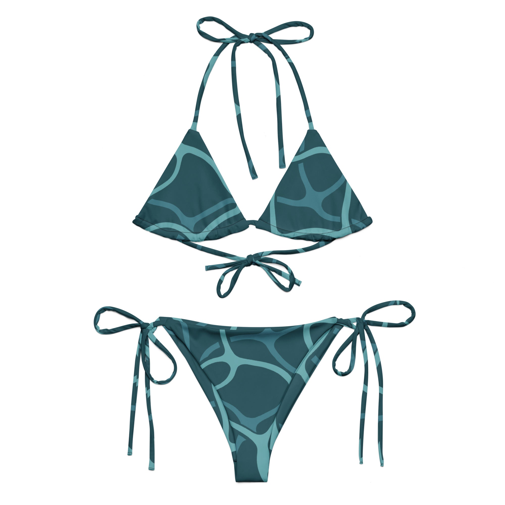 Embrace the sun, sand, and sustainability with our Sherpa Blue Water Pattern Recycled String Bikini.